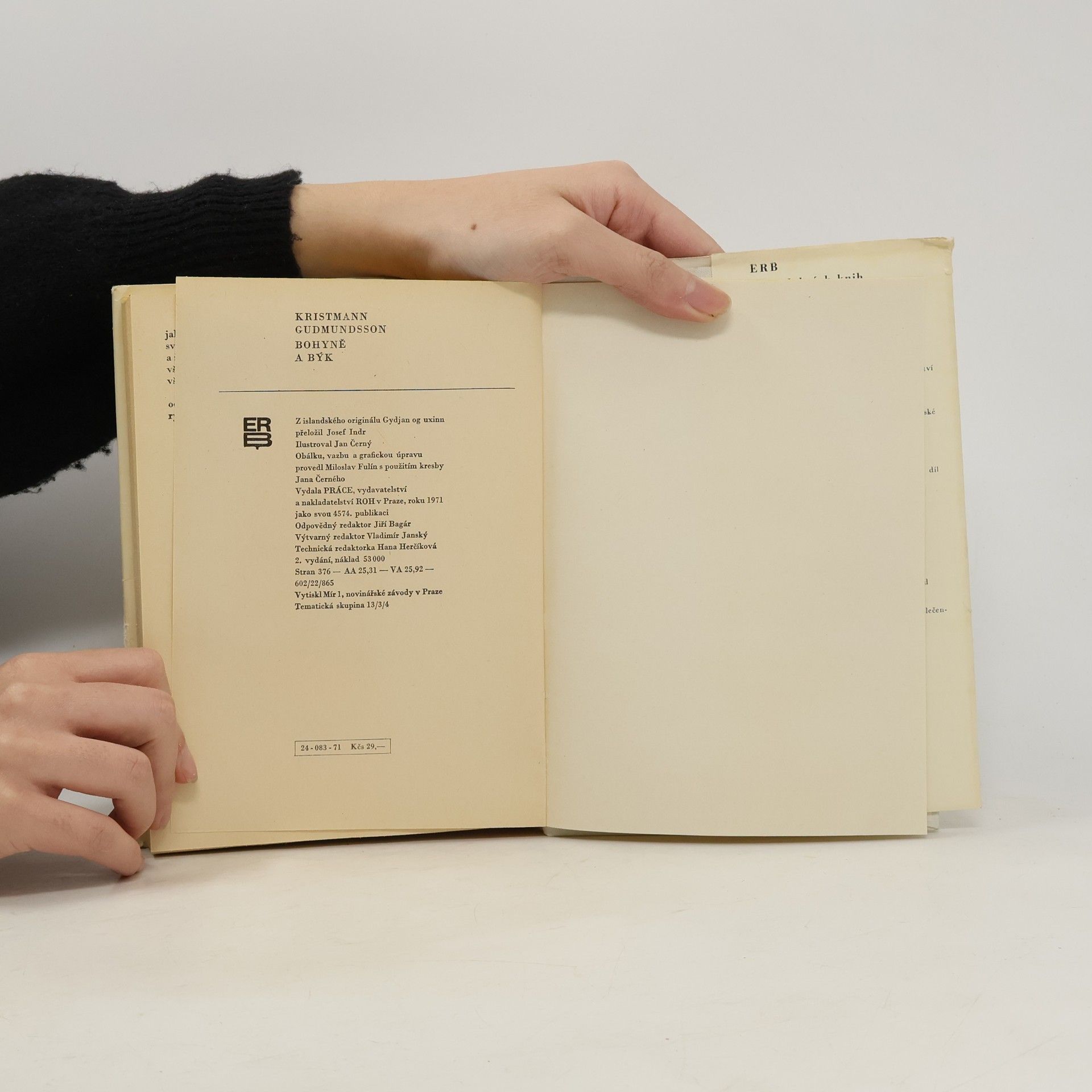 Bohyně a býk, Kristmann Gudmundsson, Josef Indr