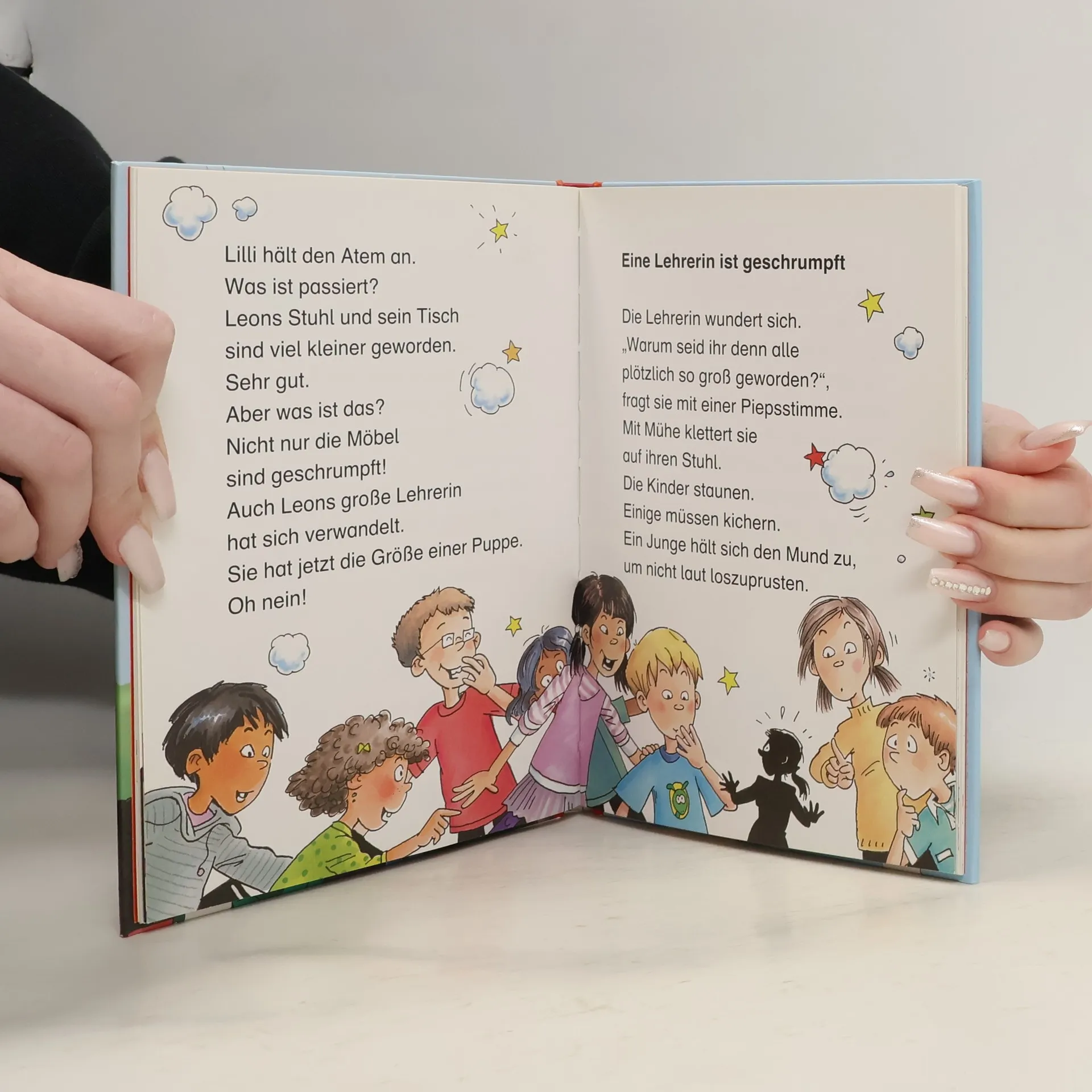 Leon kommt in die Schule! Klar, dass Lilli für einen zauberhaften ersten Schultag sorgt. Erst schrumpft sie die Lehrerin auf Puppengröße, dann verwandelt sie den strengen Hausmeister in ein blökendes Schaf. Was für ein Spaß! Als dann aber Leon von einem Großen auf dem Pausenhof geärgert wird, greift Lilli zum schärfsten Zauber aller Zeiten! ZAWUSCH!