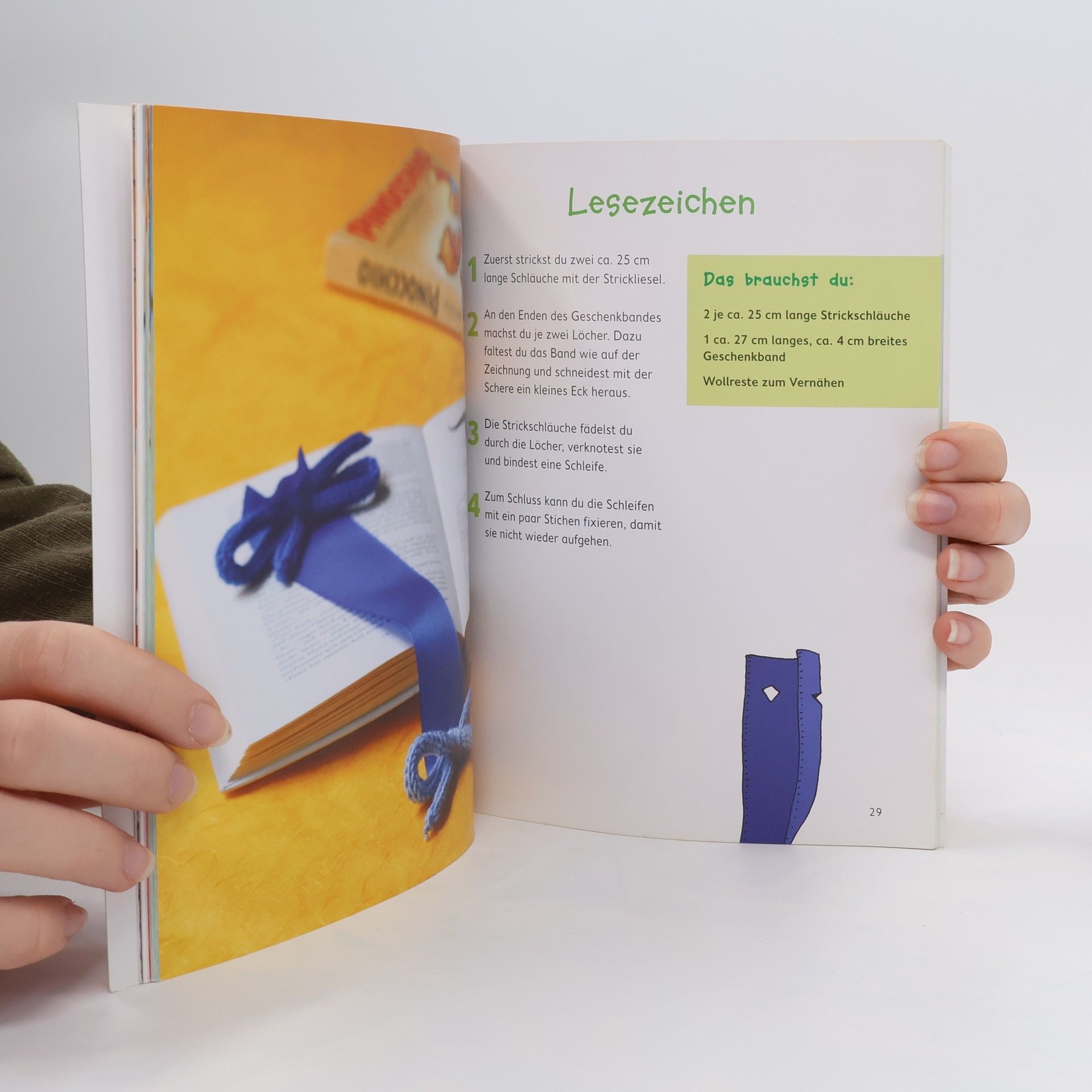 Neue Ideen für die Strickliesel Eine Strickliesel, ein Wollknäuel oder viele bunte Wollreste: Mehr braucht es nicht, um wunderschöne Dinge für sich selbst oder als Geschenk für andere zu basteln. Aus dicken und dünnen Strickschläuchen entstehen niedliche Mäuschen, Marionetten und andere Kuscheltiere zum Spielen, modische Zopfbänder und Handytaschen für die kleine Dame von Welt und praktische Utensilien, die auch den Eltern und Freunden gefallen. Wie die dünnen und dicken Strickschläuche gemacht werden, wird im Buch genau erklärt, und mit den verständlichen Anleitungen lassen sich die kinderleichten Projekte schnell verwirklichen. Damit die kleinen Bastelkünstler gleich loslegen können, ist dem Set eine Strickliesel mit vier und sechs Ösen sowie ein Holzstäbchen beigelegt. Damit lassen sich sowohl dicke als auch dünne Wollschläuche stricken.
