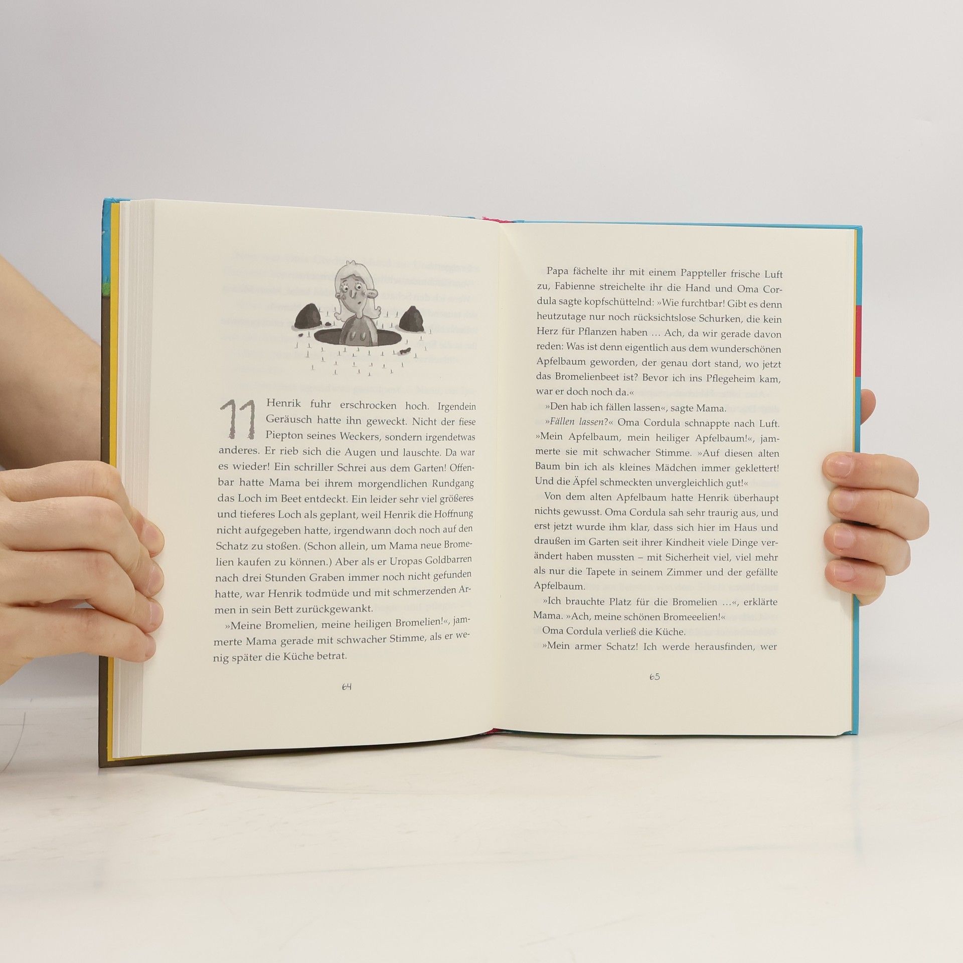 Friede, Freude, Gold im Garten? Eines Tages steht sie vor der Tür: Oma Cordula, Mamas Mutter aus dem Altersheim. Sie bringt die Familienidylle gehörig durcheinander und behauptet, im Garten sei ein Schatz vergraben. Und während der fröhlich losbuddelnde Henrik erstmal gnädig belächelt wird, fangen Loch für Loch auch Mama, Papa und die Schwester heimlich an zu graben. Irgendwann rücken sogar Stadtverwaltung und Anwohner mit ihren Schaufeln bis an die Grundstücksgrenze vor. Da muss es doch irgendwas zu holen geben. Eine warmherzige und ein bisschen verrückte Familiengeschichte von Salah Naoura.