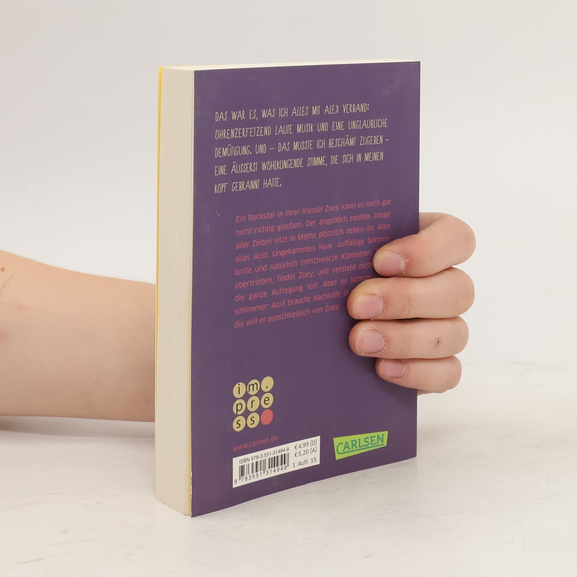 Das war es, was ich alles mit Alex verband: stickige Clubs, ohrenzerfetzend laute Musik, eine unglaubliche Demütigung, und - das musste ich beschämt zugeben - eine äußerst wohlklingende Stimme, die sich in meinen Kopf gebrannt hatte. Ein Rockstar in ihrer klasse! Zoey kann es noch gar nicht glauben. Der angeblich coolste Junge aller Zeiten sitzt in Mathe plötzlich neben ihr. Alex, alias Acid. Ja, genau - DER Acid. Ungekämmtes Haar, auffällige Sonnenbrille und natürlich tiefschwarze Klamotten. Vollkommend übertrieben, findet Zoey, und versteht nicht, warum ihre Freundinnen bei jeder seiner Bewegungen loskreischen müssen. Aber es kommt noch viel schlimmer: Acid braucht Nachhilfe in Mathe - und die will er ausgerechnet und ausschließlich von Zoey.