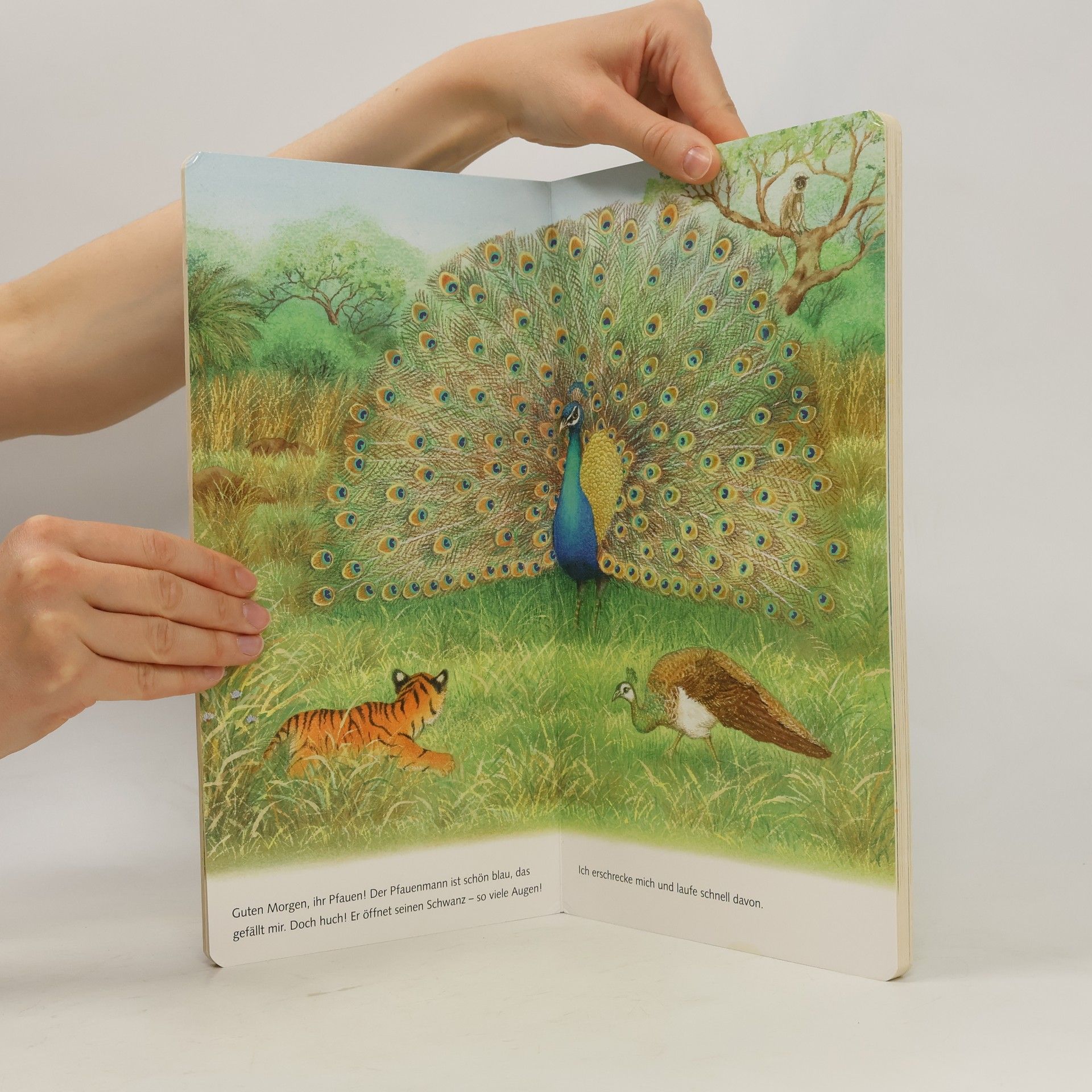 Stimmungsvolle Bilder zeigen den Lebensraum der fremden Tiere. Die Tierkinder von Tiger, Löwe und Elefant entdecken ihre Welt und erleben aufregende Abenteuer.