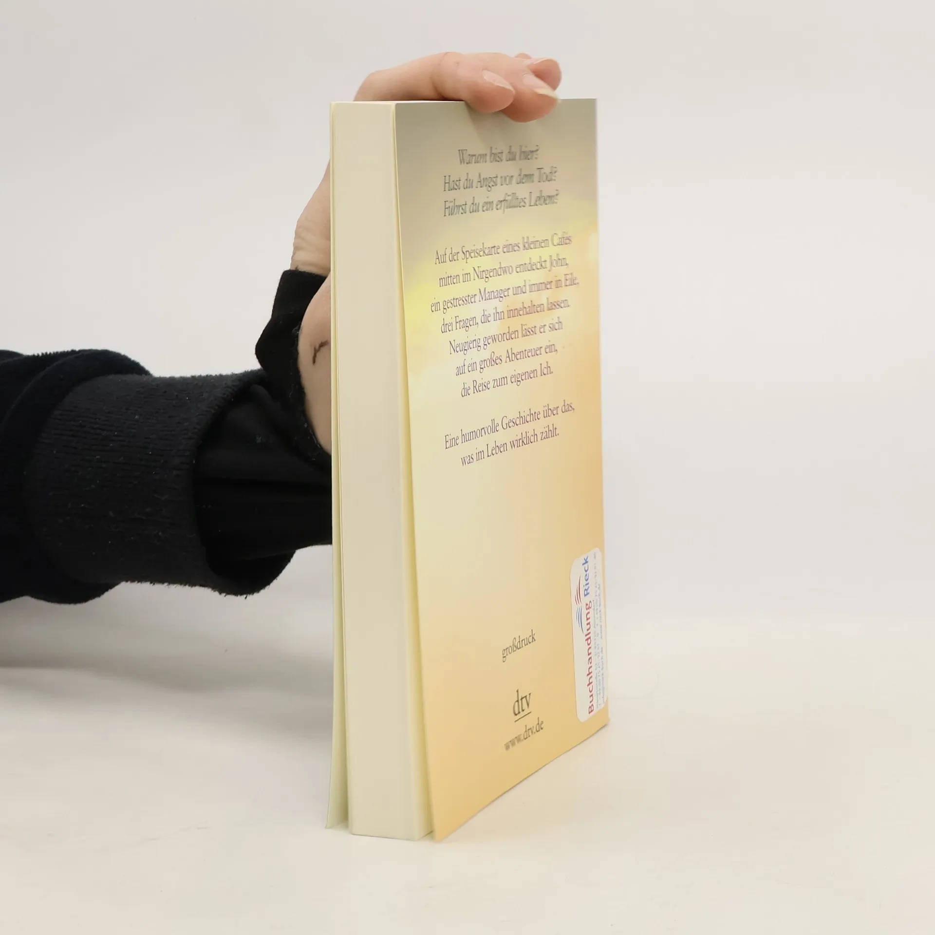 Ein kleines Café mitten im Nirgendwo wird zum Wendepunkt im Leben von John, einem Werbemanager, der stets in Eile ist. Eigentlich will er nur kurz Rast machen, doch dann entdeckt er auf der Speisekarte neben dem Menü des Tages drei Fragen: »Warum bist du hier? Hast du Angst vor dem Tod? Führst du ein erfülltes Leben?« Wie seltsam – doch einmal neugierig geworden, will John mithilfe des Kochs, der Bedienung und eines Gastes dieses Geheimnis ergründen.Die Fragen nach dem Sinn des Lebens führen ihn gedanklich weit weg von seiner Vorstandsetage an die Meeresküste von Hawaii. Dabei verändert sich seine Einstellung zum Leben und zu seinen Beziehungen, und er erfährt, wie viel man von einer weisen grünen Meeresschildkröte lernen kann. So gerät diese Reise letztlich zu einer Reise zum eigenen Selbst. Ein ebenso lebendig geschriebenes, humorvolles wie anrührendes Buch.