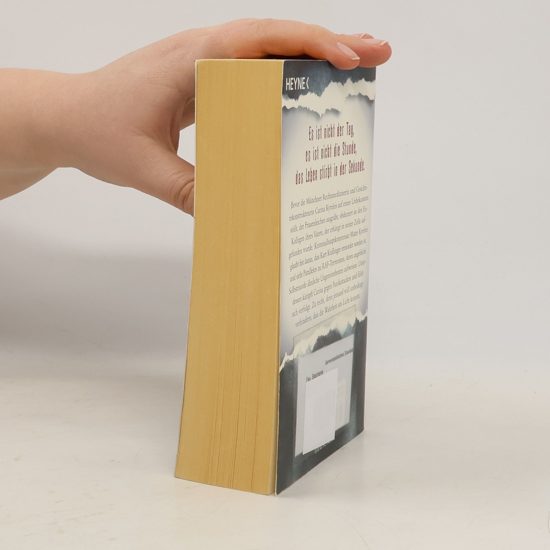 Der dritte Thriller rund um die Münchner Rechtsmedizinerin und Gesichtsrekonstrukteurin Carina Kyreleis Bevor die Münchner Rechtsmedizinerin und Gesichtsrekonstrukteurin Carina Kyreleis auf einen Unbekannten stößt, der Frauenleichen ausgräbt, obduziert sie den Ex-Kollegen ihres Vaters, der erhängt in seiner Zelle aufgefunden wurde. Kriminalhauptkommissar Matte Kyreleis glaubt fest daran, dass Kurt Krallinger ermordet worden ist, und sieht Parallelen zu RAF-Terroristen, deren angebliche Selbstmorde ähnliche Ungereimtheiten aufweisen. Unter dessen kämpft Carina gegen Panikattacken und fühlt sich verfolgt. Zu recht, denn jemand will unbedingt verhindern, dass die Wahrheit ans Licht kommt.