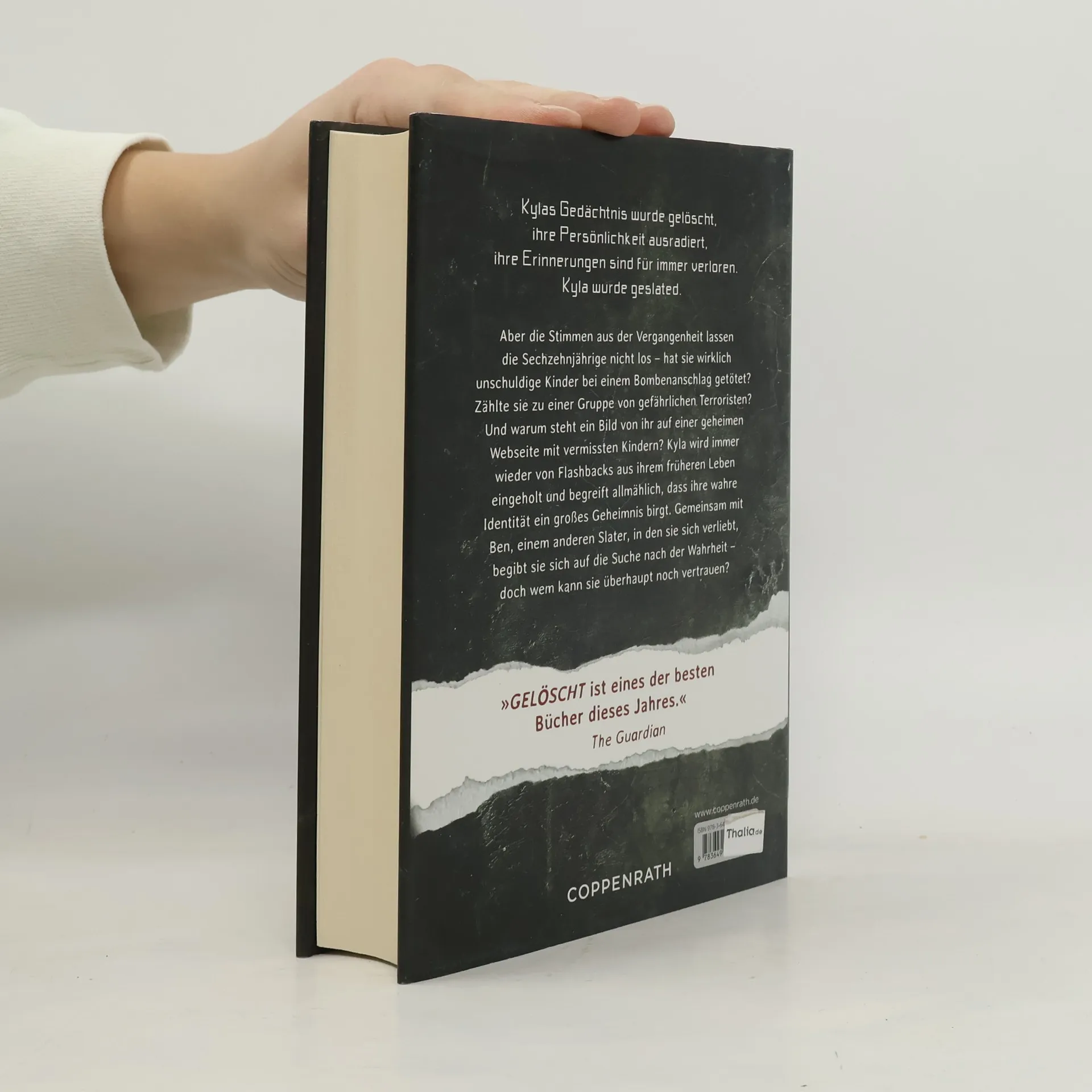 Kylas Gedächtnis wurde gelöscht, ihre Persönlichkeit ausradiert, ihre Erinnerungen sind für immer verloren. Kyla wurde geslated. Aber die Stimmen aus der Vergangenheit lassen die Sechzehnjährige nicht los – hat sie wirklich unschuldige Kinder bei einem Bombenanschlag getötet? Zählte sie zu einer Gruppe von gefährlichen Terroristen? Und warum steht ein Bild von ihr auf einer geheimen Webseite mit vermissten Kindern? Kyla wird immer wieder von Flashbacks aus ihrem früheren Leben eingeholt und merkt allmählich, dass ihre wahre Identität ein großes Geheimnis birgt. Gemeinsam mit Ben, einem anderen Slater, in den sie sich verliebt, begibt sie sich auf die Suche nach der Wahrheit – doch wem kann sie überhaupt noch vertrauen?