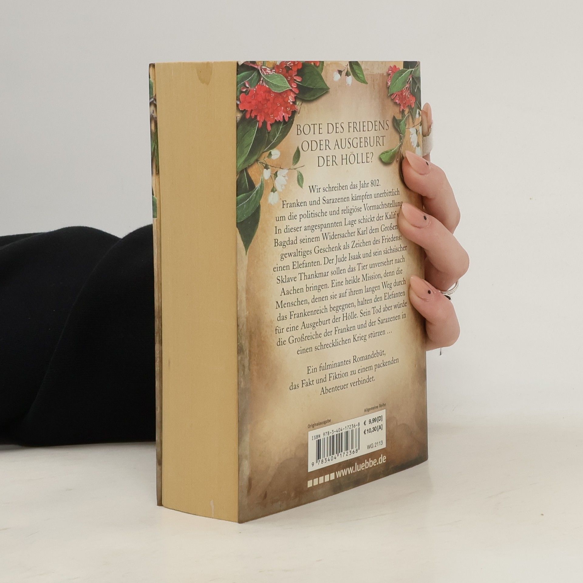 Wir schreiben das Jahr 802. Franken und Sarazenen kämpfen unerbittlich um die politische und religiöse Vormachtstellung. In dieser angespannten Lage schickt der Kalif von Bagdad seinem Widersacher Karl dem Großen ein gewaltiges Geschenk als Zeichen des Friedens: einen Elefanten. Der Jude Isaak und sein sächsischer Sklave Thankmar sollen das Tier unversehrt nach Aachen bringen. Eine heikle Mission, denn die Menschen, denen sie auf ihrem langen Weg durch das Frankenreich begegnen, halten den Elefanten für eine Ausgeburt der Hölle. Sein Tod aber würde die Großreiche der Franken und der Sarazenen in einen schrecklichen Krieg stürzen ...