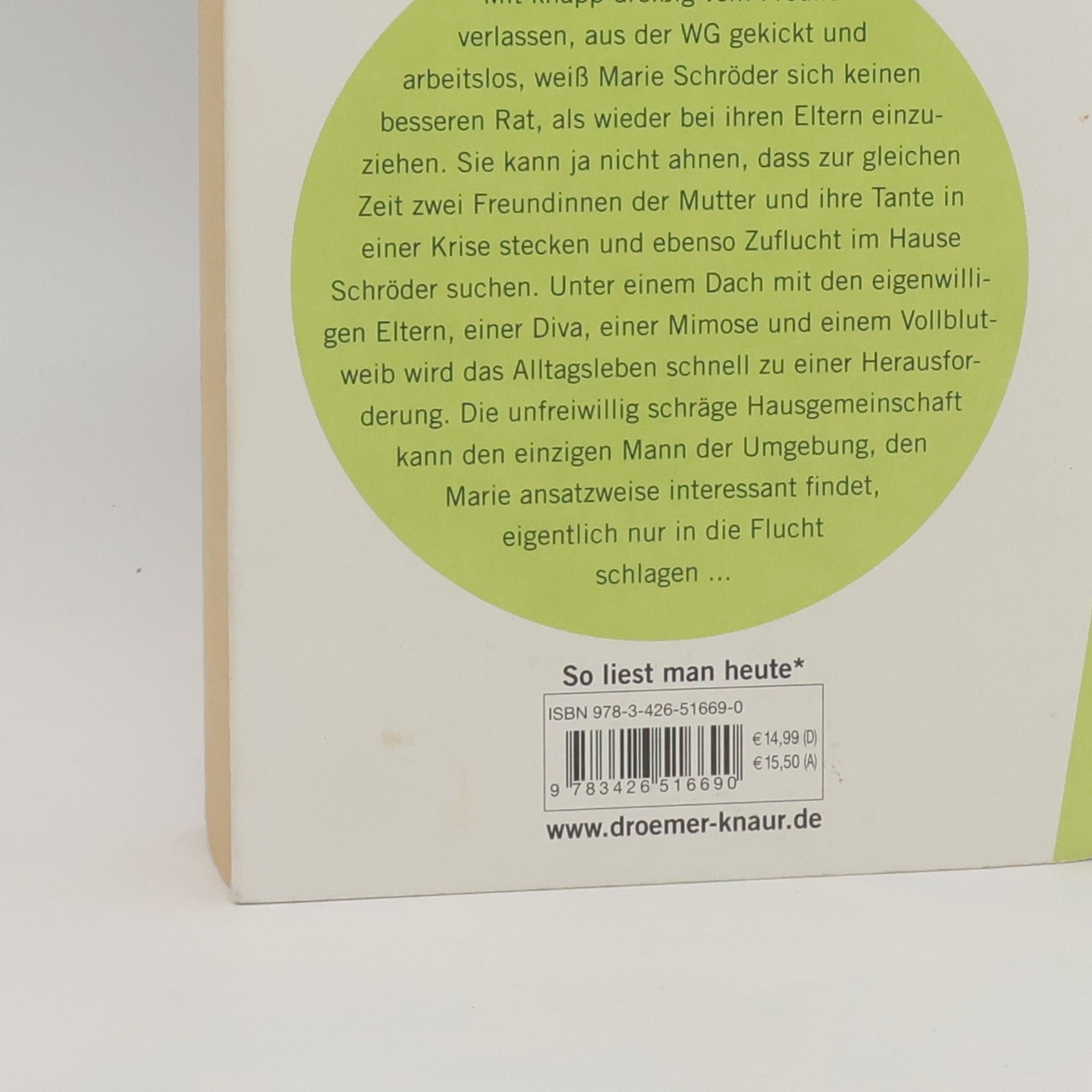 Mit knapp dreißig Jahren vom Freund verlassen, aus der WG gekickt und arbeitslos, weiß Marie Schröder sich keinen besseren Rat, als wieder bei ihren Eltern einzuziehen. Sie kann ja nicht ahnen, dass zur gleichen Zeit zwei Freundinnen der Mutter und ihre Tante in einer Krise stecken und ebenso Zuflucht im Hause Schröder suchen. Unter einem Dach mit den eigenwilligen Eltern, einer Diva, einer Mimose und einem Vollblutweib wird das Alltagsleben schnell zu einer Herausforderung. Die unfreiwillig schräge Hausgemeinschaft kann den einzigen Mann der Umgebung, den Marie ansatzweise interessant findet, eigentlich nur in die Flucht schlagen ...