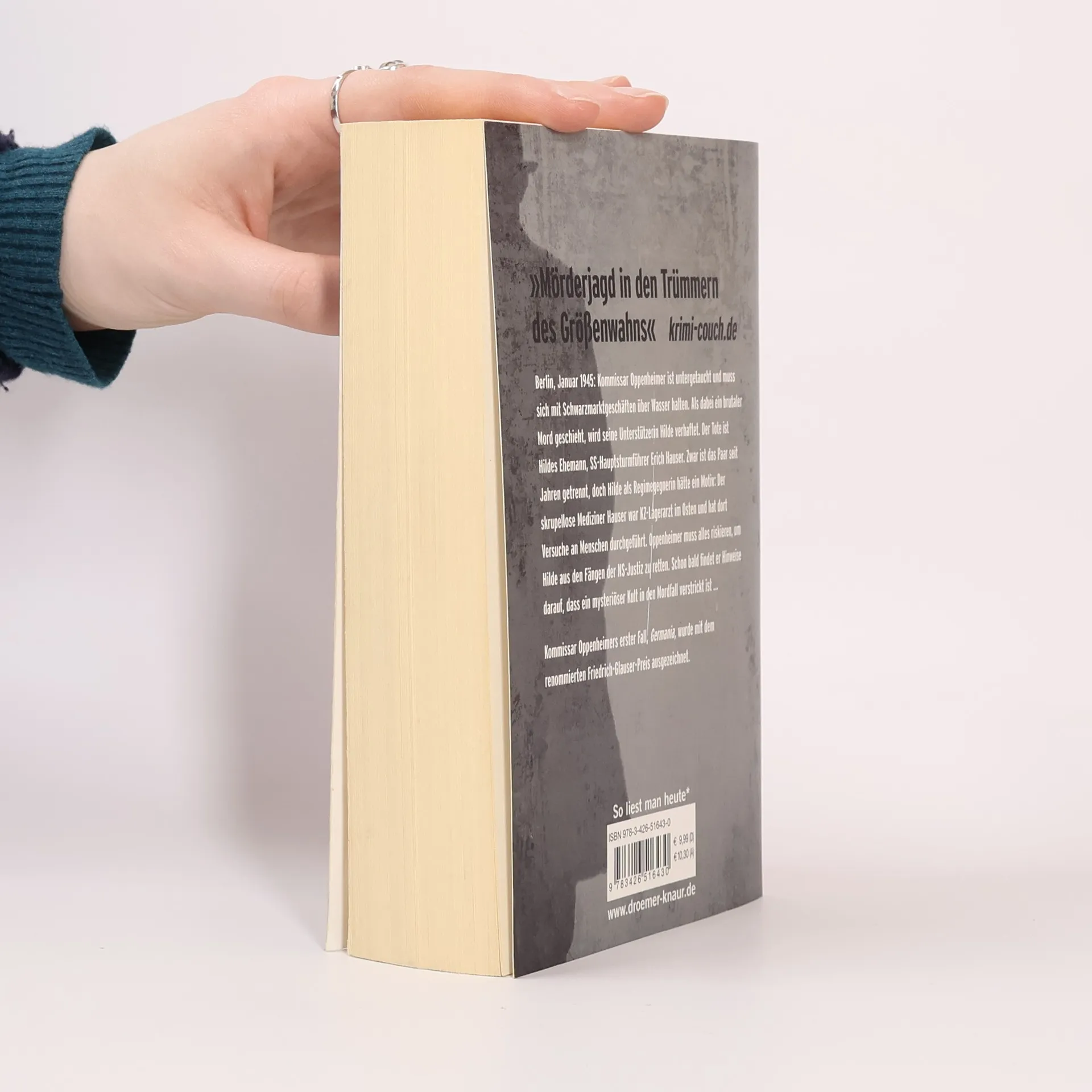 Kommissar Oppenheimer ist untergetaucht und muss sich mit Schwarzmarktgeschäften über Wasser halten. Als dabei ein brutaler Mord geschieht, wird seine Unterstützerin Hilde verhaftet, denn der Tote ist ihr Ehemann, SS-Hauptsturmführer Erich Hauser. Zwar sind die beiden seit Jahren getrennt, doch Hilde als Regimegegnerin hätte ein Motiv: Der skrupellose Mediziner Hauser war KZ-Lagerarzt im Osten und hat dort Versuche an Menschen durchgeführt. Oppenheimer muss alles riskieren, um Hilde aus den Fängen der NS-Justiz zu retten. Schon bald findet er Hinweise darauf, dass ein mysteriöser Kult in den Mordfall verstrickt ist ...