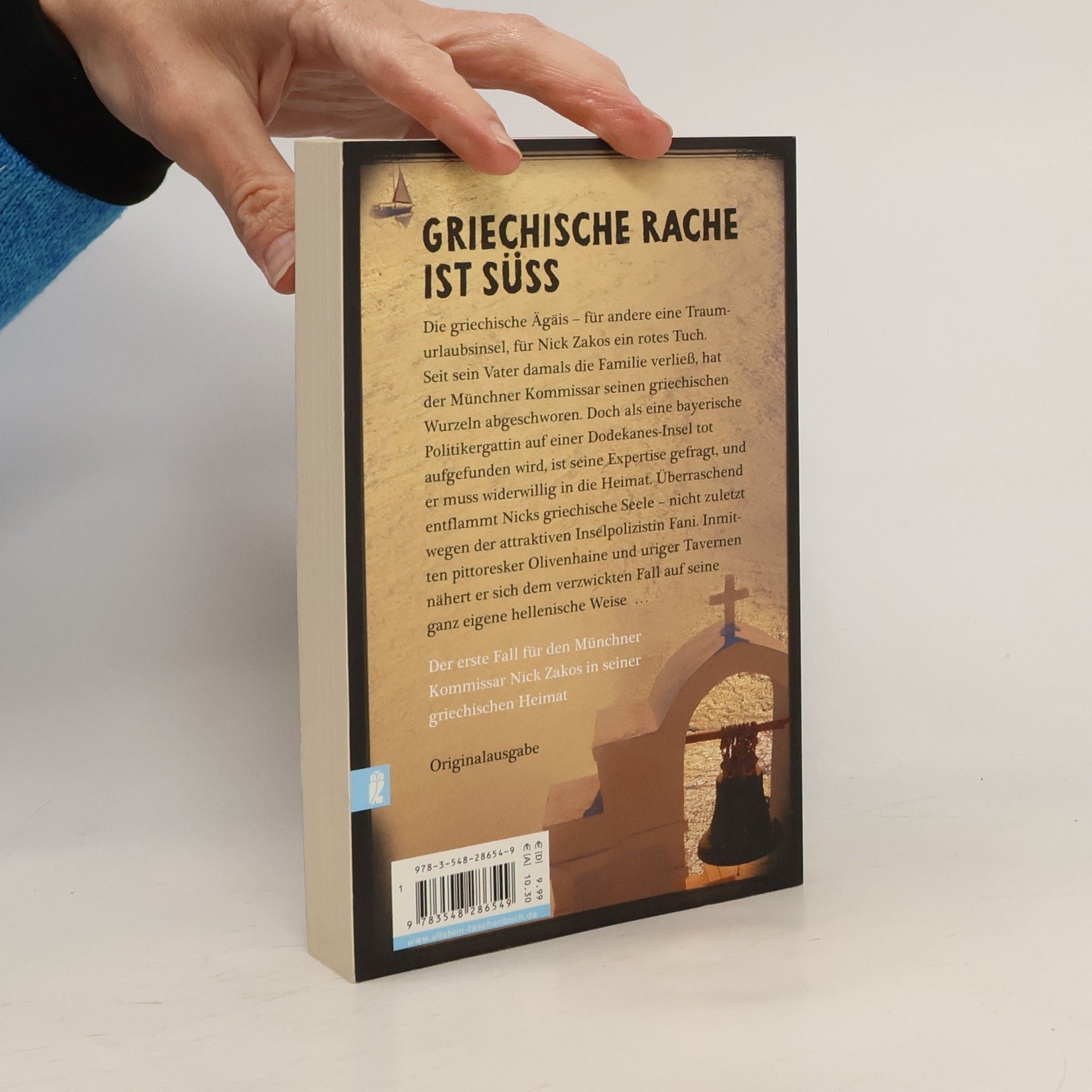 Nick Zakos, Halbgrieche und Star der Münchner Mordkommission, ist urlaubsreif. Doch aus Ferien wird nichts, weil auf einer griechischen Insel die Leiche einer deutschen Urlauberin gefunden wird. Da es sich um die Ehefrau eines ranghohen bayerischen Politikers handelt, wird Nick um Amtshilfe gebeten. Nick ist alles andere als begeistert — Griechenland kann ihm gestohlen bleiben, seit sein Vater die Familie verlassen hat. Doch als er schließlich auf der Dodekanesinsel ankommt, erwacht seine griechische Seele zum Leben — nicht zuletzt wegen der attraktiven Inselpolizistin Fani. Und in genau diese Seele muss er eintauchen, um den äußerst verwickelten Fall zu lösen, denn griechische Rache ist süß ...