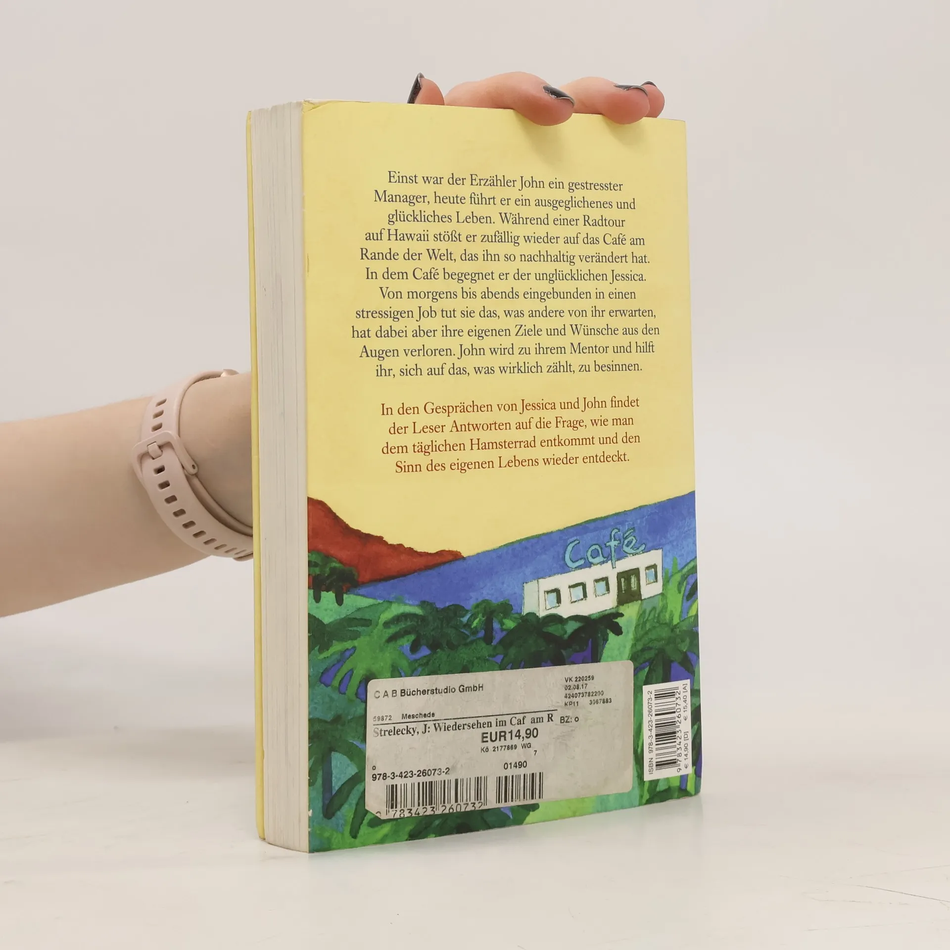 Warum bist du hier? Hast du Angst vor dem Tod? Führst du ein erfülltes Leben? Einst war der Erzähler John ein gestresster Manager, heute führt er ein ausgeglichenes und glückliches Leben. Während einer Radtour auf Hawaii erinnert sich John an den Tag vor zehn Jahren, der sein Leben radikal verändert hat. Damals war er zufällig auf das Café am Rande der Welt gestoßen. Und obwohl er sich nun an einem völlig anderen Ort befindet, Tausende Kilometer entfernt, sieht er es plötzlich wieder. In dem Café begegnet er der attraktiven Jessica, die unglücklich mit ihrem Leben ist. Eingebunden in ein stressiges Arbeitsleben tut sie das, was andere von ihr erwarten, hat dabei aber ihre eigenen Ziele und Wünsche aus den Augen verloren. John wird zu ihrem Mentor und hilft ihr, sich auf den Sinn ihres Lebens zu besinnen. Wunderbar vierfarbig illustriert von Root Leeb.