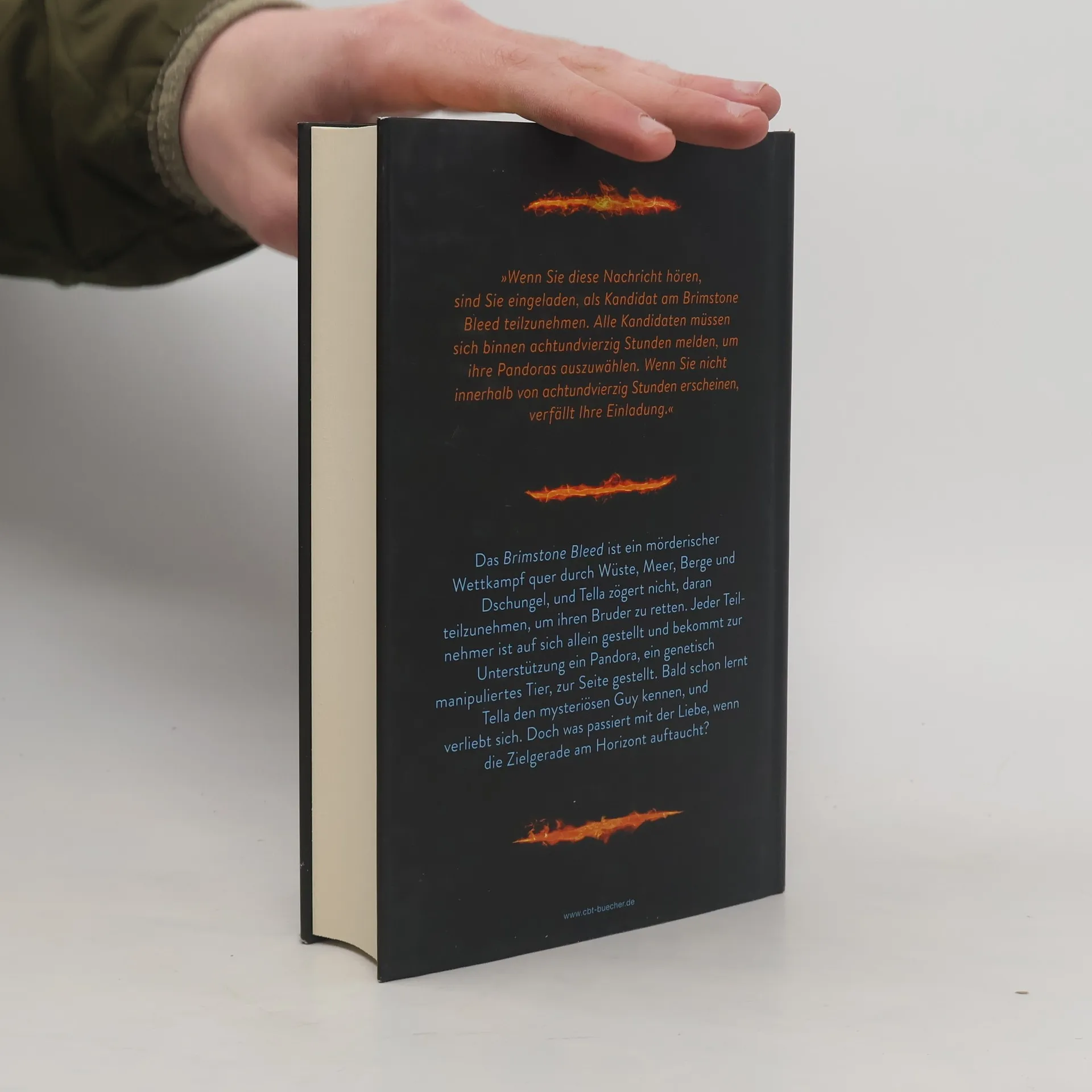Ein atemberaubendes Wettrennen um Leben und TodDie 17-jährige Tella zögert keine Sekunde, als sie eine Einladung zum mysteriösen Brimstone Bleed erhält, einem tödlichen Wettrennen, das sie und andere Teilnehmer durch einen tückischen Dschungel und eine sengend heiße Wüste führt. Als Preis winkt das Heilmittel für ihren todkranken Bruder. Zur Seite steht ihr ein Pandora, ein genetisch verändertes Tier, das sie bei ihrer Aufgabe unterstützen soll. In ihrem Fall ist es ein Fuchs namens Madox, und gemeinsam kämpfen sie sich durch die erste Etappe des mörderischen Rennens. Doch es kann nur einen Sieger geben, und jeder Teilnehmer ist bereit, sein Leben für das eines geliebten Menschen aufs Spiel zu setzen. Tella muss mehr über das Brimstone Bleed erfahren, bevor ihre Zeit abläuft. Doch dann verliebt sie sich in den mysteriösen Guy – und alle freundschaftlichen Gefühle scheinen dahin, als es auf die Zielgerade zugeht …