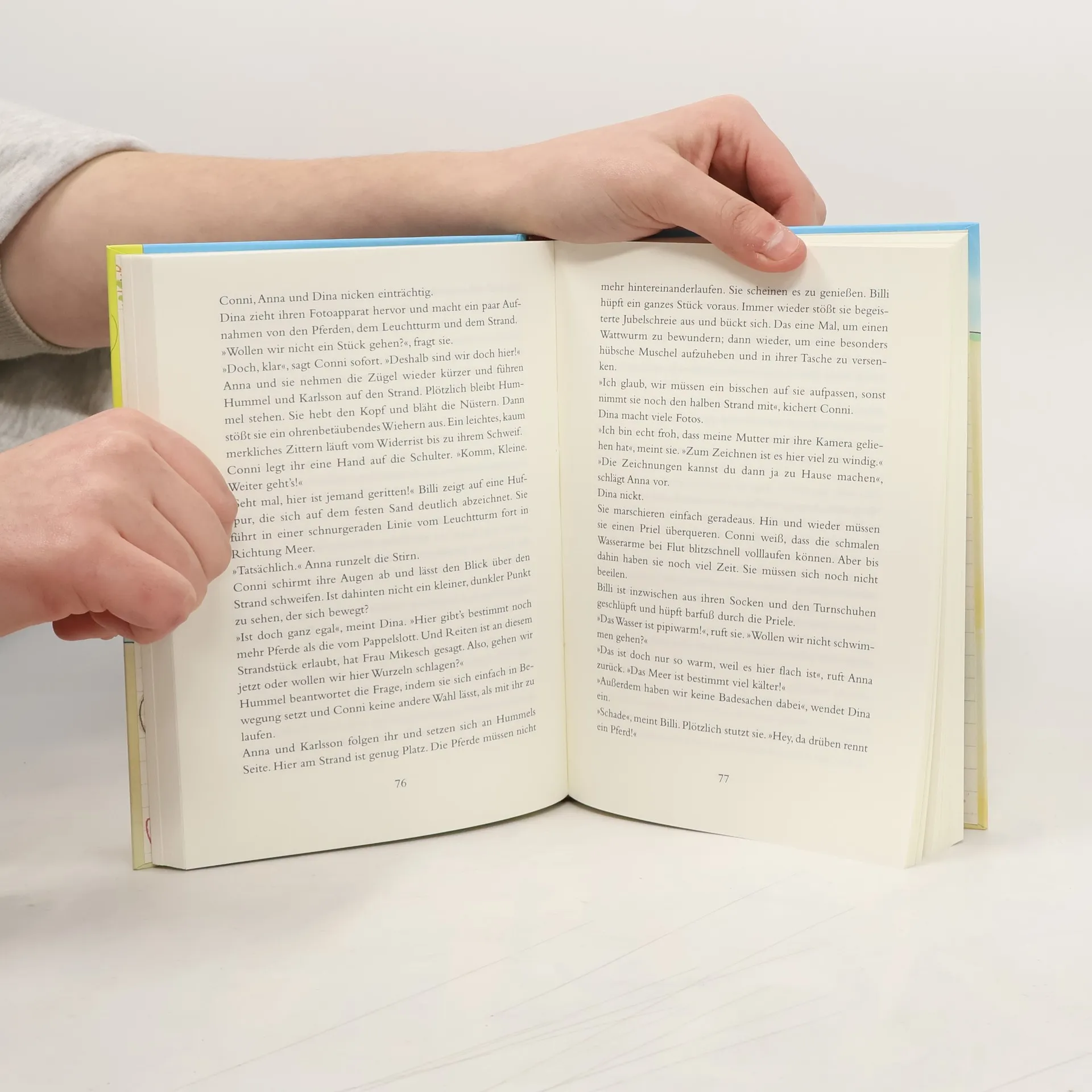Conni, Anna, Billi und Dina verbringen eine Woche auf einem Reiterhof an der Nordsee. Der Hof ist wunderschön, die Besitzerin nett, das Wetter ebenso prächtig wie die Pferde. Alles ist genauso, wie das Kleeblatt es sich vorgestellt hat. Die vier bekommen Reitunterricht und machen lange Ausritte an den Strand. Doch dann werden die Mädchen plötzlich in einen richtigen Pferdekrimi verwickelt ...