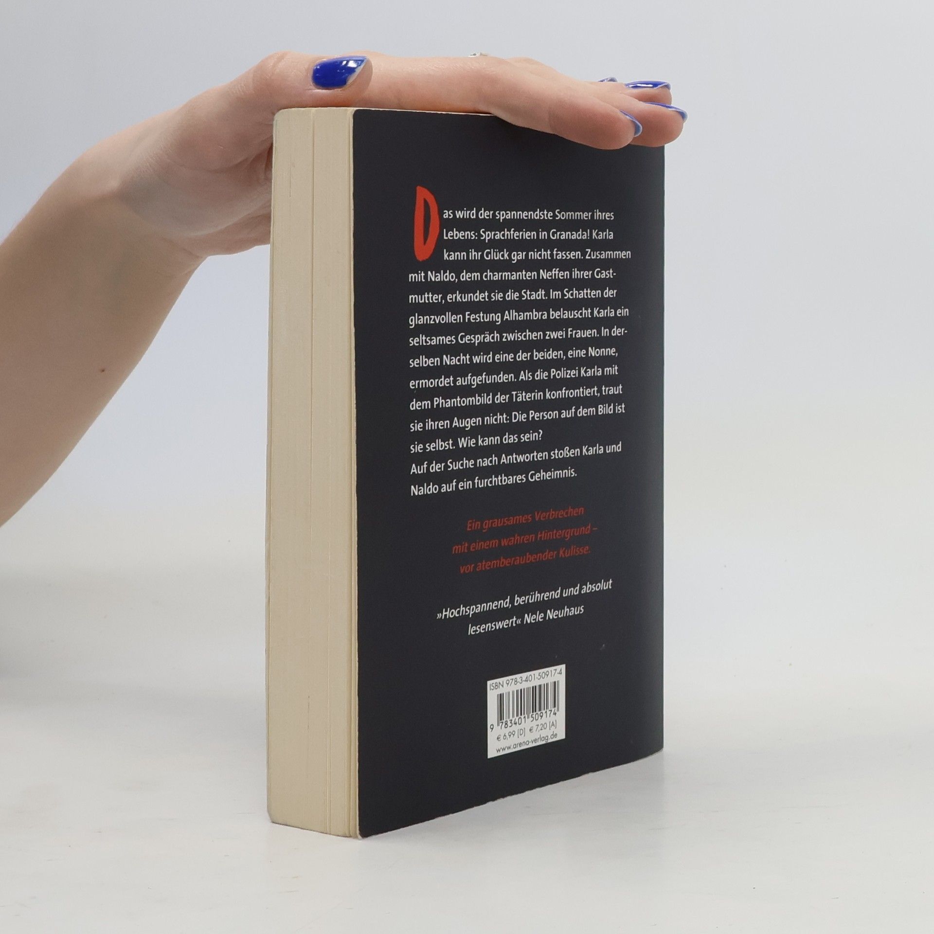 Das wird der spannendste Sommer ihres Lebens: Sprachferien in Granada! Karla kann ihr Glück gar nicht fassen. Zusammen mit Naldo, dem charmanten Neffen ihrer Gastmutter, erkundet sie die Stadt. Im Schatten der glanzvollen Festung Alhambra belauscht Karla ein seltsames Gespräch zwischen zwei Frauen. In derselben Nacht wird eine der beiden, eine Nonne, ermordet aufgefunden. Als die Polizei Karla mit dem Phantombild der Täterin konfrontiert, traut sie ihren Augen nicht: Die Person auf dem Bild ist sie selbst. Wie kann das sein? Auf der Suche nach Antworten stoßen Karla und Naldo auf ein furchtbares Geheimnis. Ein grausames Verbrechen mit einem wahren Hintergrund - vor atemberaubender Kulisse.