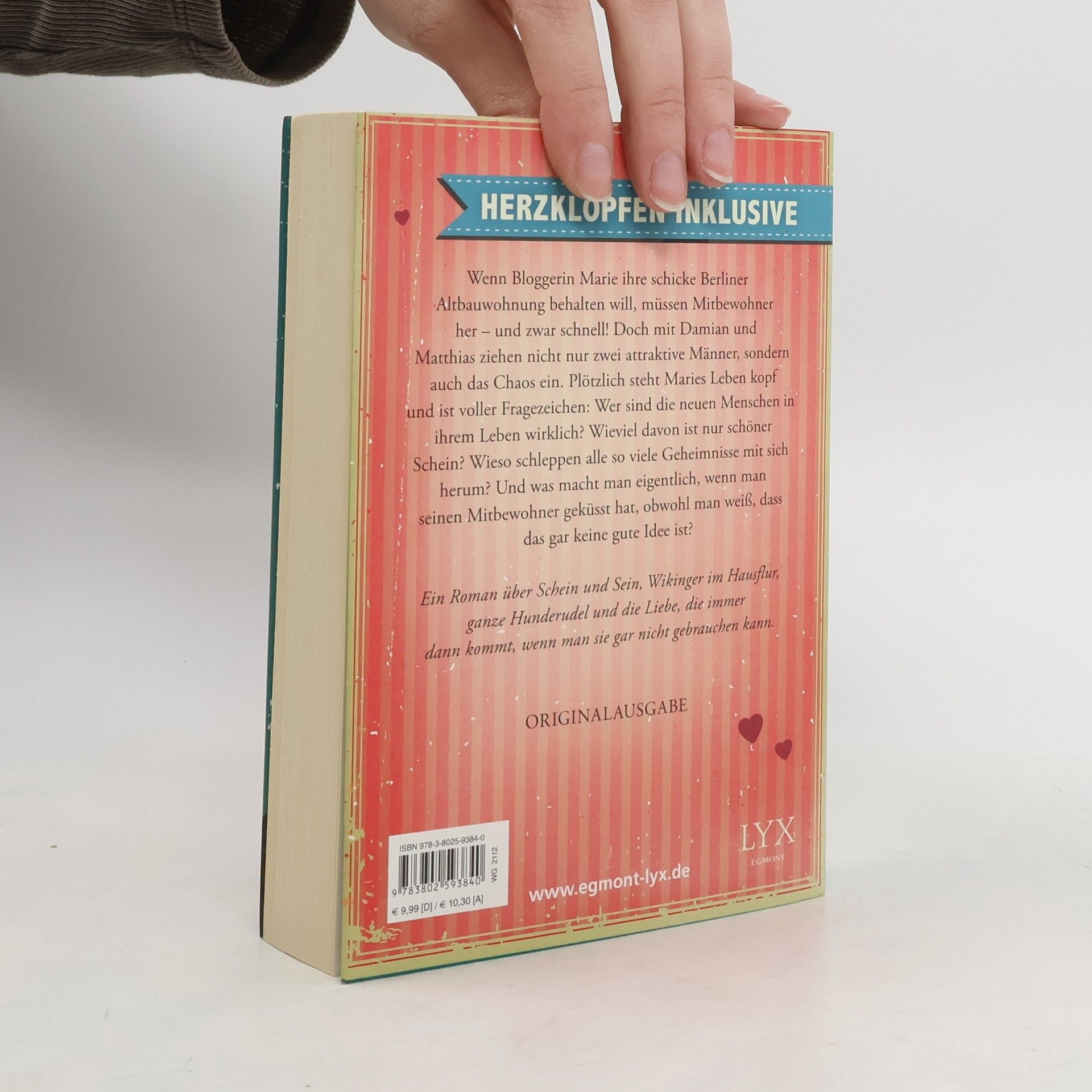 Wenn Bloggerin Marie ihre schicke Berliner Altbauwohnung behalten will, müssen Mitbewohner her - und zwar schnell! Doch mit Damian und Matthias ziehen nicht nur zwei hübsche Männer sondern auch das Chaos ein. Plötzlich steht Maries Leben Kopf und ist voller Fragezeichen: Wer sind die neuen Menschen in ihrem Leben wirklich? Wieviel davon ist nur schöner Schein? Wieso schleppen alle so viele Geheimnisse mit sich herum? Und was macht man eigentlich, wenn man seinen Mitbewohner geküsst hat, obwohl man weiß, dass das gar keine gute Idee ist? Ein Roman über Schein und Sein, Wikinger im Hausflur, ganze Hunderudel und die Liebe, die immer dann kommt, wenn man sie gar nicht gebrauchen kann. „Wenn es jemand mit Sophie Kinsella und Co. aufnehmen kann, dann definitiv Kristina Günak!“ Literaturmarkt. info