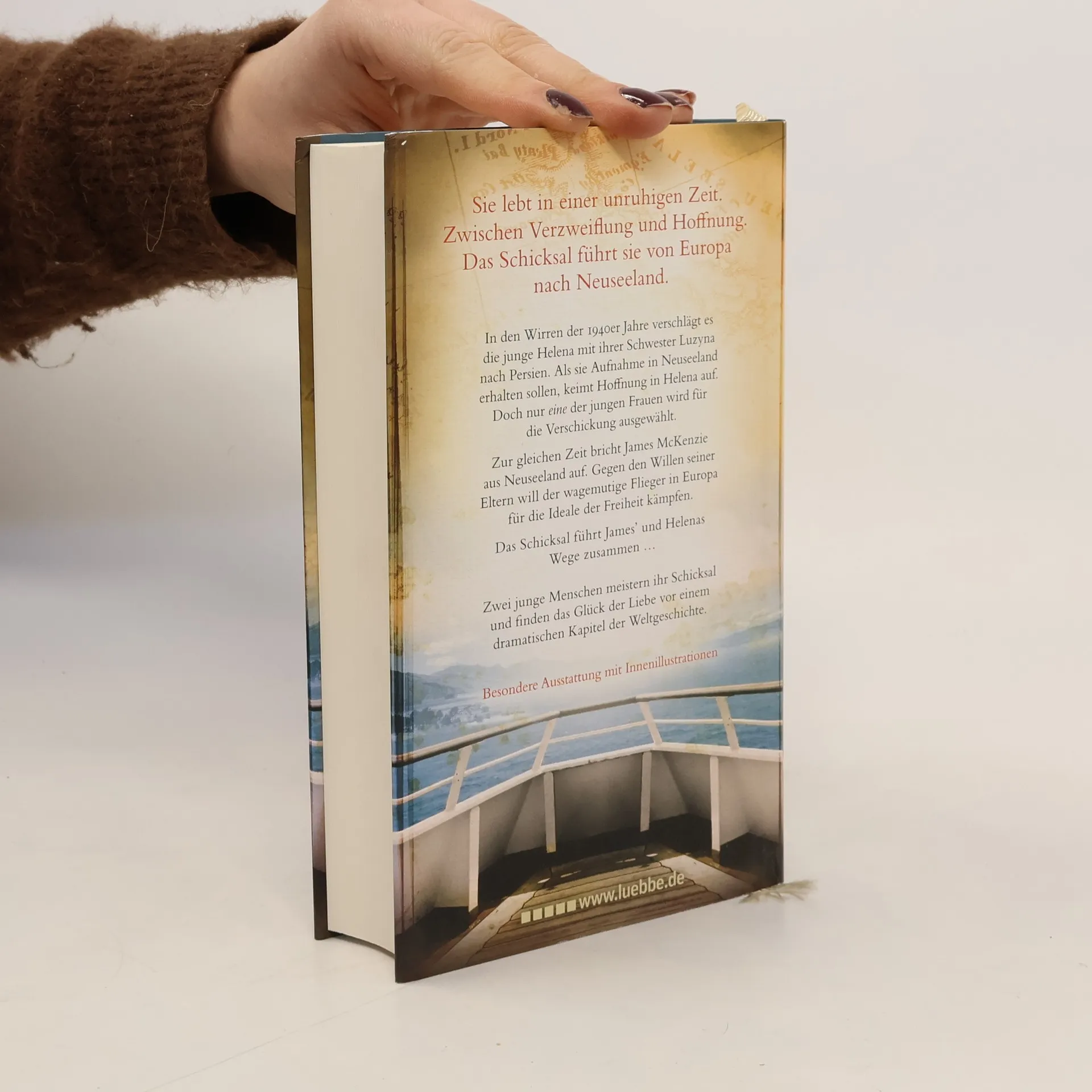 Sarah Lark legt nach ihren großen Familiensagas nun eine ergreifende Liebesgeschichte zwischen Europa und Neuseeland vor. Der wunderbar illustrierte Roman EINE HOFFNUNG AM ENDE DER WELT knüpft an die Familiengeschichte der McKenzies aus der bekannten Weiße-Wolke-Saga an. In den Wirren der 1940er Jahre verschlägt es die junge Polin Helena mit ihrer Schwester Luzyna nach Persien. Als sie Aufnahme in Neuseeland erhalten sollen, keimt Hoffnung in Helena auf. Doch nur eine der jungen Frauen wird für die Verschickung ausgewählt. Zur gleichen Zeit bricht James McKenzie aus Neuseeland auf. Gegen den Willen seiner Eltern will der wagemutige Flieger in Europa für die Ideale der Freiheit kämpfen.Das Schicksal führt James' und Helenas Wege zusammen ... Zwei junge Menschen meistern ihr Schicksal und finden das Glück der Liebe vor einem dramatischen Kapitel der Weltgeschichte.