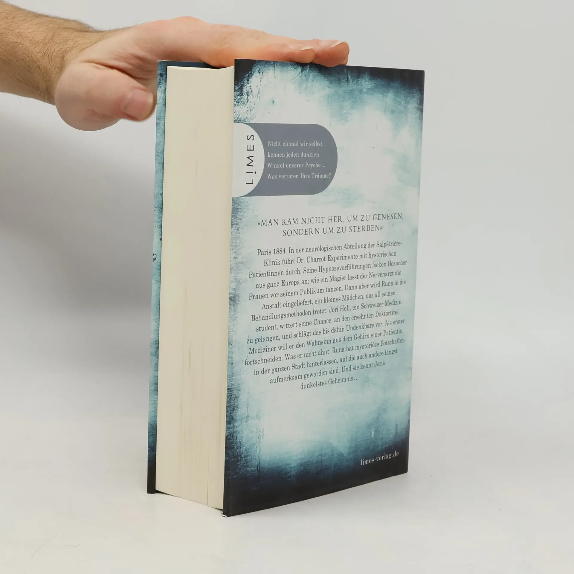 „Man kam nicht her, um zu genesen, sondern um zu sterben.“ Paris 1884. In der neurologischen Abteilung der Salpêtrière-Klinik führt Dr. Charcot Experimente mit hysterischen Patientinnen durch. Seine Hypnosevorführungen locken Besucher aus ganz Europa an; wie ein Magier lässt der Nervenarzt die Frauen vor seinem Publikum tanzen. Dann aber wird Runa in die Anstalt eingeliefert, ein kleines Mädchen, das all seinen Behandlungsmethoden trotzt. Jori Hell, ein Schweizer Medizinstudent, wittert seine Chance, an den ersehnten Doktortitel zu gelangen, und schlägt das bis dahin Undenkbare vor. Als erster Mediziner will er den Wahnsinn aus dem Gehirn einer Patientin fortschneiden. Was er nicht ahnt: Runa hat mysteriöse Botschaften in der ganzen Stadt hinterlassen, auf die auch andere längst aufmerksam geworden sind. Und sie kennt Joris dunkelstes Geheimnis …