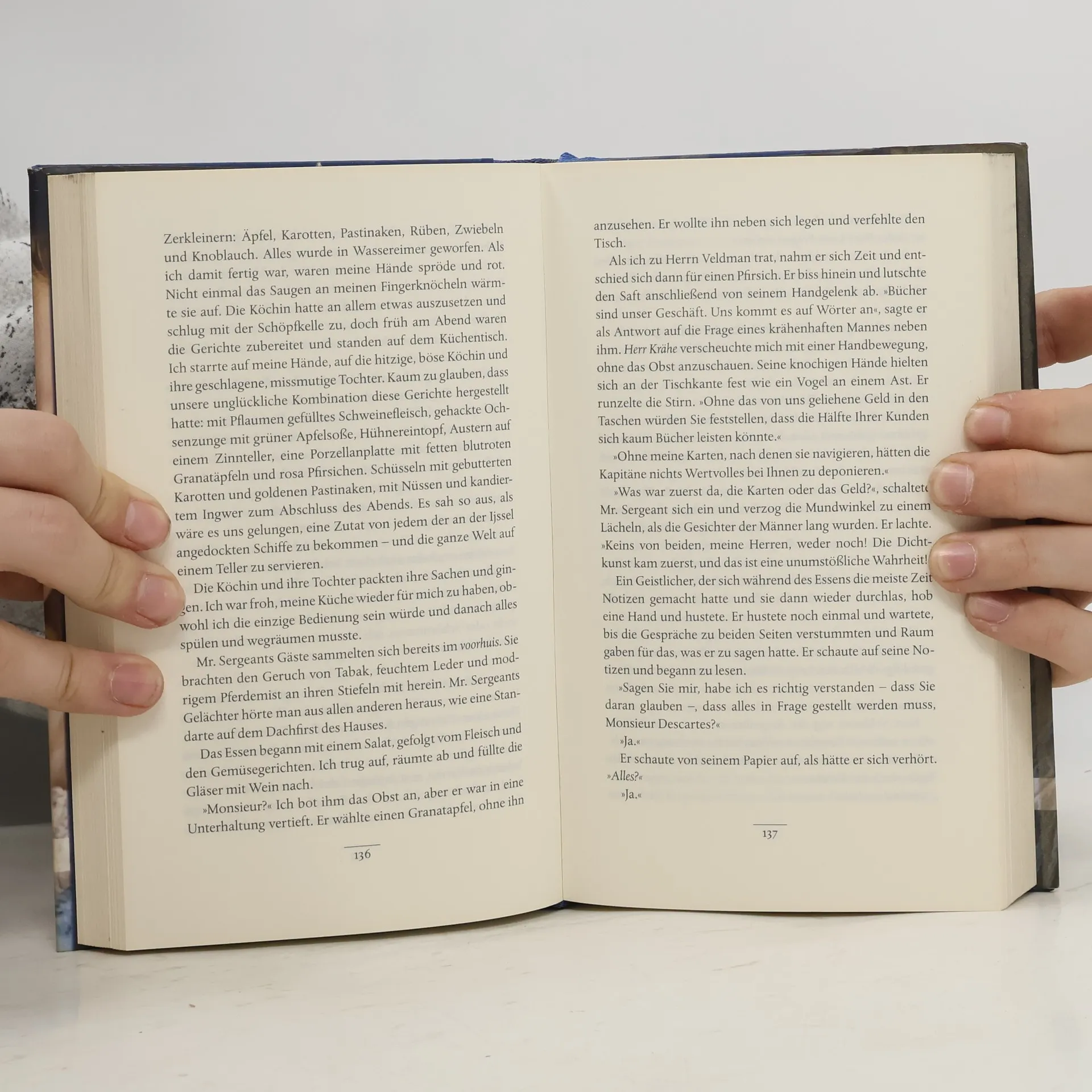 René Descartes und Helena Jans van der Strom – eine wahre Geschichte Helena Jans van der Strom arbeitet als Magd bei einem Buchhändler in Amsterdam. Ein großes Glück für sie, denn sie liest und schreibt und kann ihrer Leidenschaft heimlich nachgehen. Der neue Hausgast ihres Herrn fasziniert sie: Er arbeitet ununterbrochen, und er zieht viele Besucher an. Sie erfährt seinen Namen: René Descartes. Sie ist zu neugierig, um Distanz zu wahren. Und auch Descartes ist schon bald von ihrem Charme und Wissensdurst eingenommen. Sie verlieben sich, was nicht sein darf. Die Geschichte einer Frau, die mehr vom Leben verlangt, als ihre Zeit ihr bereit ist zu geben. 1630: Hollands Goldenes Zeitalter, Amsterdam und seine wohlhabenden Bürger ziehen Künstler und Intellektuelle an. Auch das Haus, in dem die junge Helena als Magd beschäftigt ist, hat einen neuen Gast. Helena ist angewiesen, ihn nur »Monsieur« zu nennen. Es ist ein noch unbekannter Philosoph aus Frankreich, sein Name ist René Descartes. Von nun an ist das Haus erfüllt von der inspirierenden Präsenz des schreibenden Fremden. Er weckt in Helena einen Wissensdurst, der anderen bislang verborgen war, und er ist begeistert von ihrer Auffassungsgabe und ihrem Talent zu schreiben. Sie wiederum ist betört von seiner sanften Art und seiner oft überraschenden Sicht auf die Dinge. Sie verliebe sich, was unmöglich ist. „In ihre Version der Helena hätten wir uns auch verliebt.“ Brigitte „Worte in meiner Hand“ ist auf der Shortlist für den renommierten Costa Award.