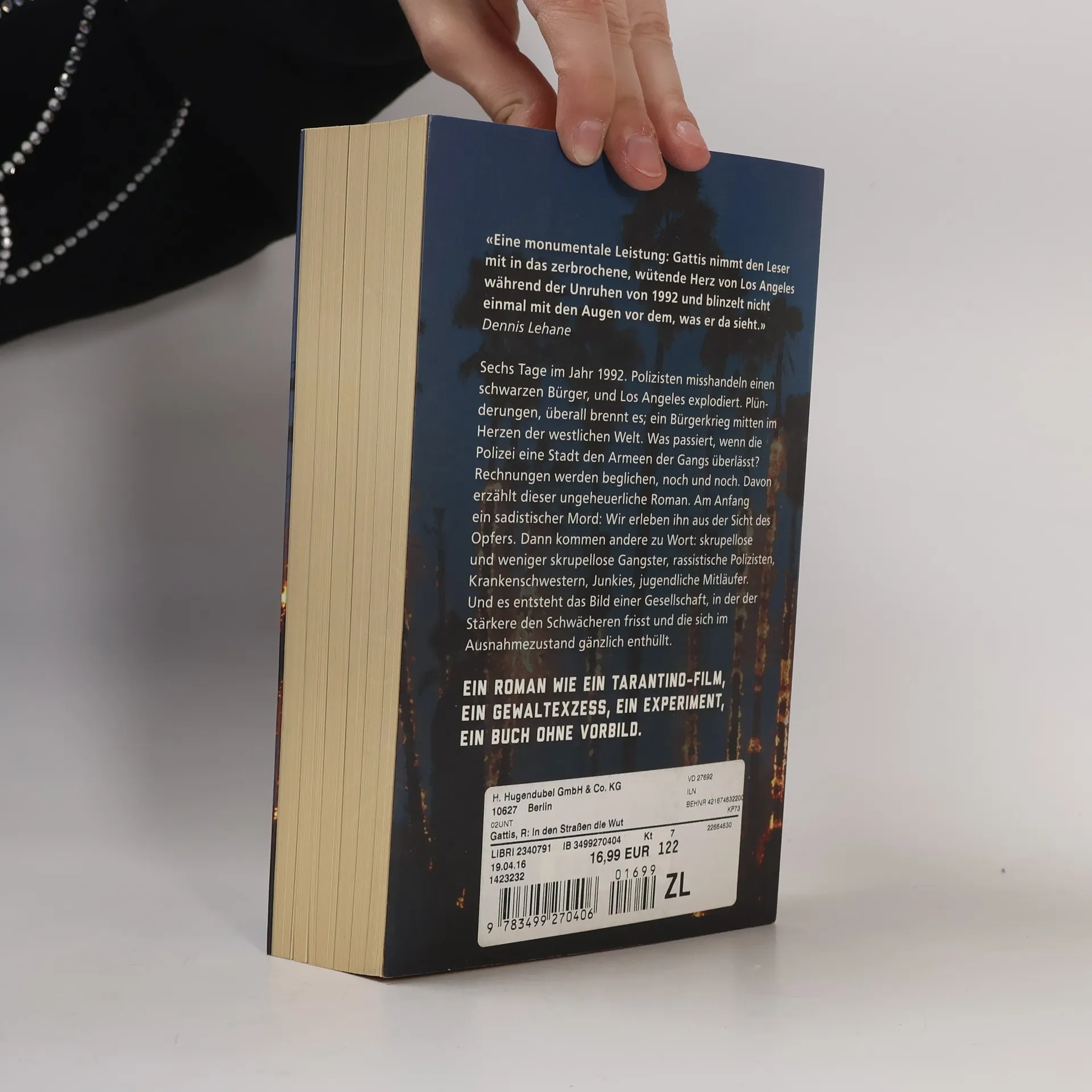 Sechs Tage im Jahr 1992. Polizisten misshandeln einen schwarzen Bürger und Los Angeles explodiert. Plünderungen, überall brennt es; ein Bürgerkrieg mitten im Herzen der westlichen Welt. Was passiert, wenn die Polizei eine Stadt den Armeen der Gangs überlässt? Rechnungen werden beglichen, noch und noch. Davon erzählt dieser ungeheuerliche Roman. Am Anfang ein unmenschlicher Mord: Wir erleben ihn aus der Sicht des Opfers. Dann kommen andere zu Wort: skrupellose und weniger skrupellose Gangster, rassistische Polizisten, Krankenschwestern, Junkies, jugendliche Mitläufer. Und es entsteht das Bild einer Gesellschaft, in der der Stärkere den Schwächeren frisst und die sich im Ausnahmezustand gänzlich enthüllt. Ein Roman wie ein Tarantino-Film, ein Gewaltexzess, ein Experiment, ein Buch ohne Vorbild.