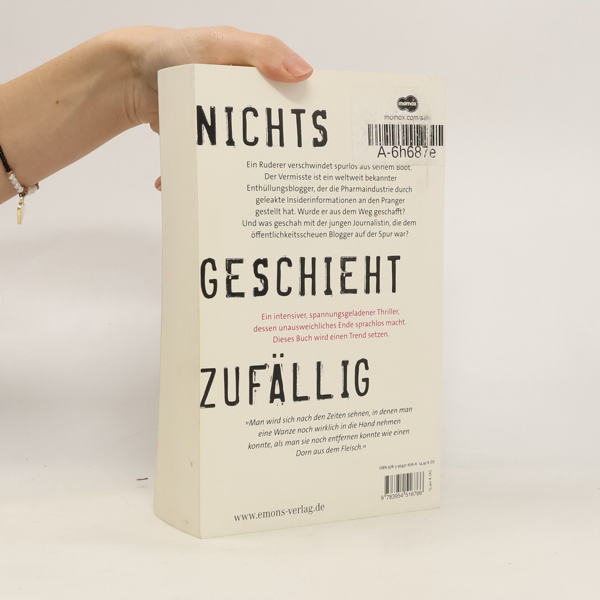 Ein Ruderer verschwindet spurlos aus seinem Boot. Der Vermisste ist der weltweit bekannte Enthüllungsblogger René Berger, der die Pharmaindustrie durch geleakte Insiderinformationen an den Pranger gestellt hat. Wurde er aus dem Weg geschafft? Und was geschah mit der jungen Journalistin Marie Sommer, die dem öffentlichkeitsscheuen Blogger auf der Spur war? Ein intensiver, spannungsgeladener Thriller über die Unmöglichkeit, das richtige Leben im falschen zu führen.