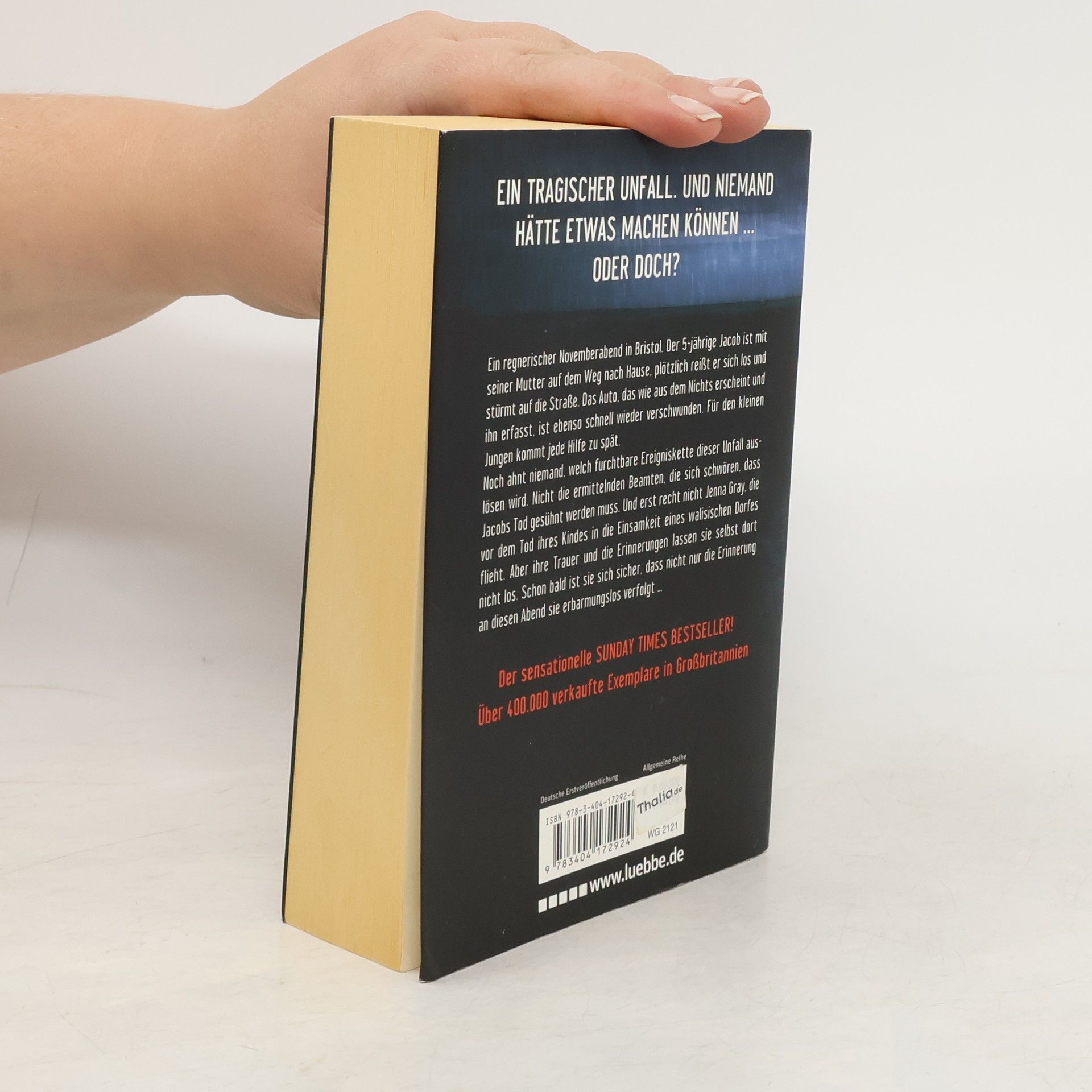 Ein regnerischer Abend in Bristol. Der 5-jährige Jacob ist mit seiner Mutter auf dem Weg nach Hause, plötzlich reißt er sich los und stürmt auf die Straße. Das Auto, das wie aus dem Nichts erscheint und ihn erfasst, ist ebenso schnell wieder verschwunden. Für den kleinen Jungen kommt jede Hilfe zu spät. Jenna Gray flieht vor den Ereignissen in die Einsamkeit eines walisischen Dorfes. Aber die Trauer um ihr Kind und die Erinnerungen lassen sie selbst dort nicht los. Schon bald ist sie sich sicher, dass nicht nur die Vergangenheit sie erbarmungslos verfolgt ...