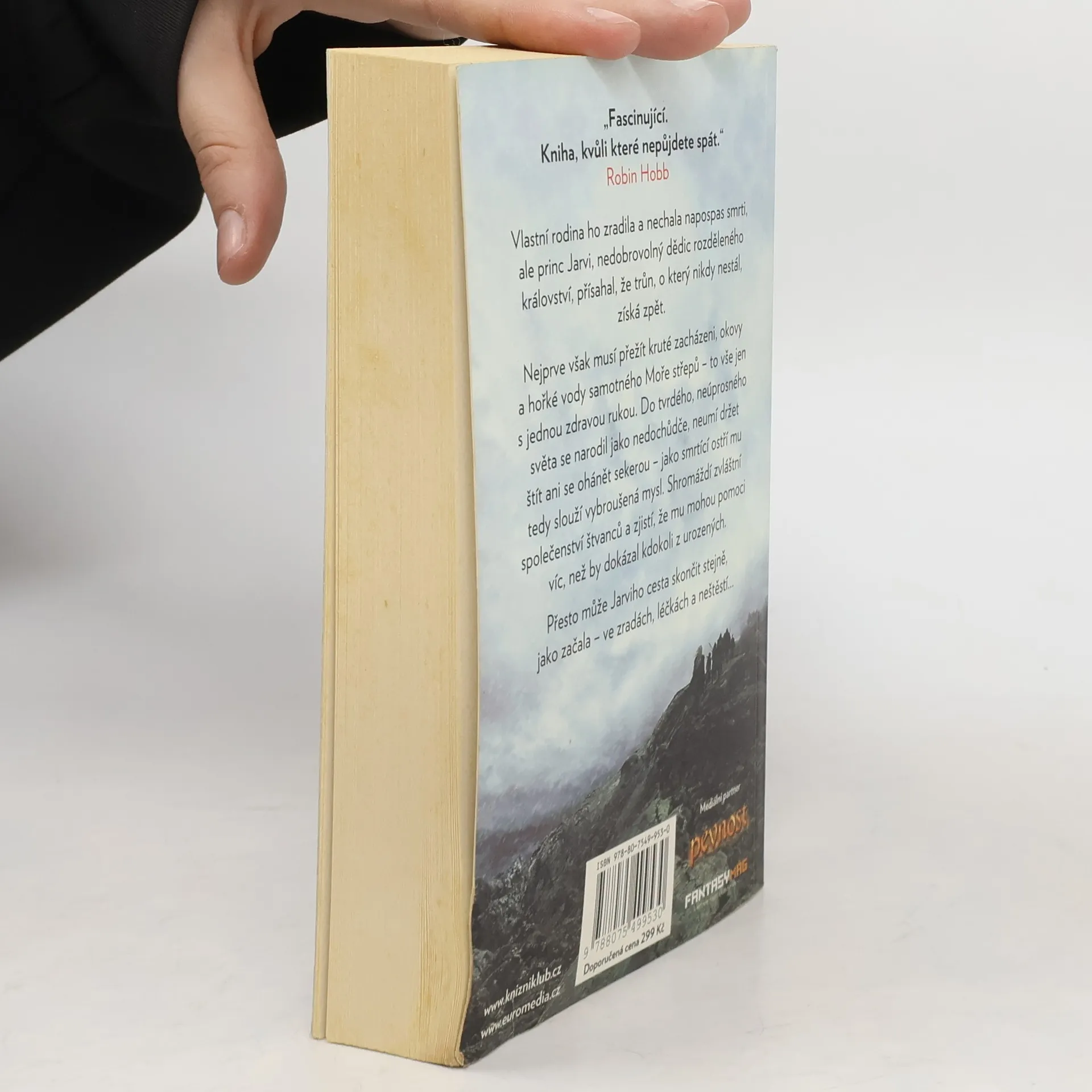 Vlastní rodina ho zradila a nechala napospas smrti, ale princ Jarvi, nedobrovolný dědic rozděleného království, přísahal, že trůn, o který nikdy nestál, získá zpět. Nejprve však musi přežít kruté zacházení, okovy a hořké vody samotného Roztříštěného moře – to vše jen s jednou zdravou rukou. Do tvrdého, neúprosného světa se narodil jako nedochůdče, neumí držet štít ani se ohánět sekerou – jako smrtíci ostří mu tedy slouží vybroušená mysl. Shromáždí zvláštní společenství štvanců a zjistí, že mu mohou pomoci víc, než by dokázal kdokoli z urozených. Přesto může Jarviho cesta skončit stejně, jako začala – ve zvratech, léčkách a neštěstí...