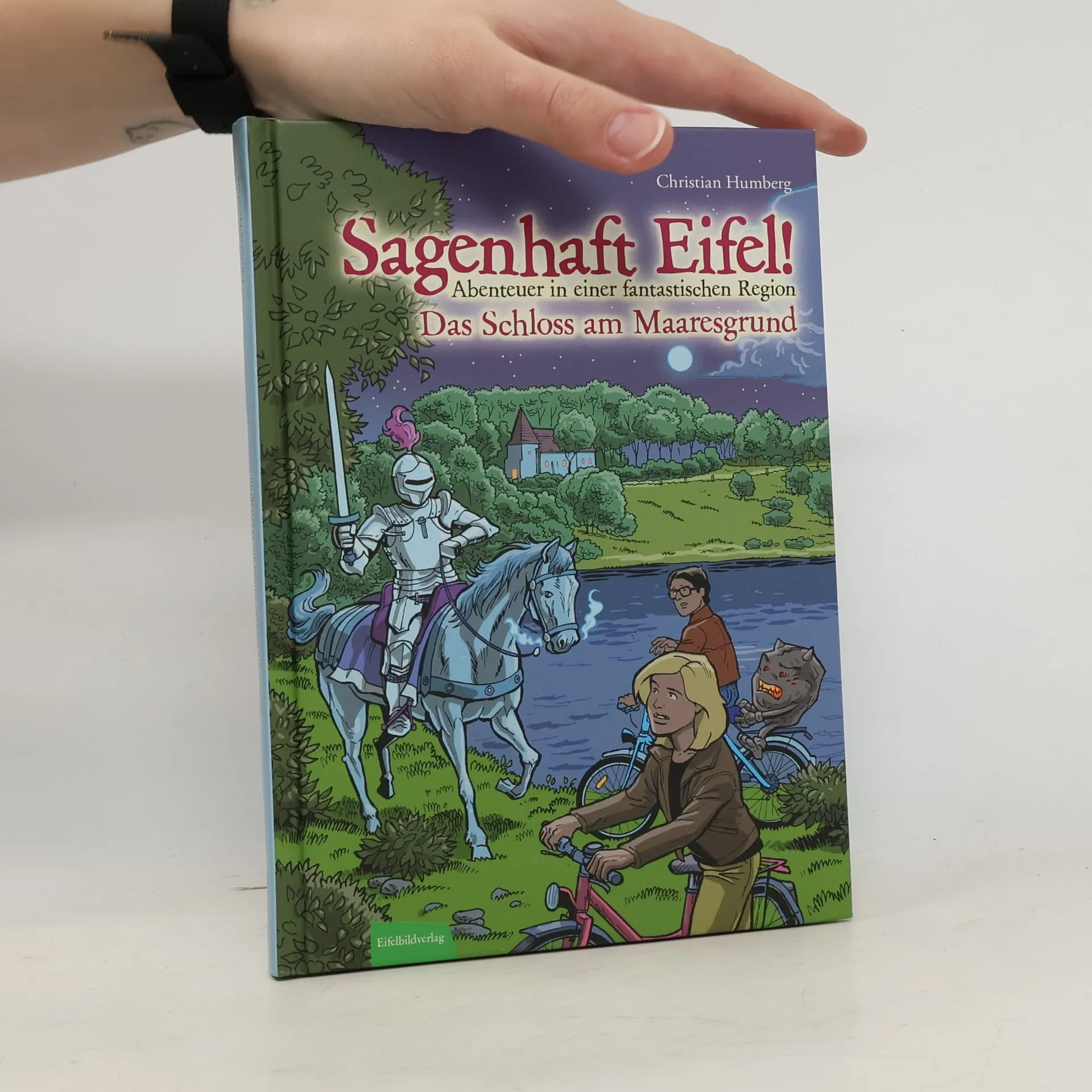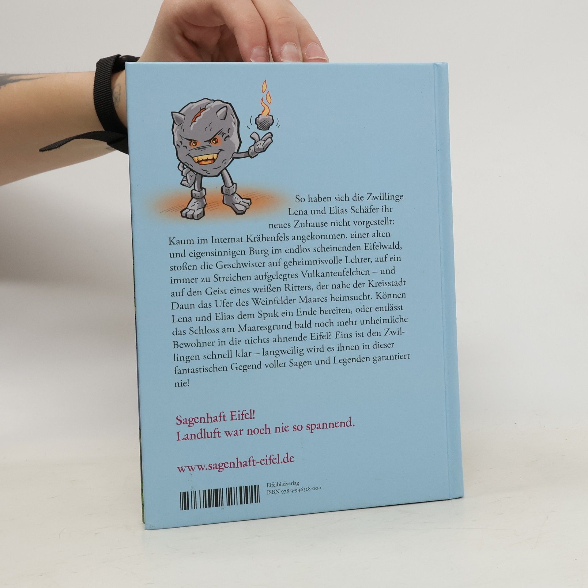 Sagenhaft Eifel! – Landluft war noch nie so spannend. So haben sich die Zwillinge Lena und Elias Schäfer ihr neues Zuhause nicht vorgestellt: Kaum im Internat Krähenfels angekommen, einer alten und eigensinnigen Burg im endlos scheinenden Eifelwald, stoßen die Geschwister auf geheimnisvolle Lehrer, auf ein immer zu Streichen aufgelegtes Vulkanteufelchen – und auf den Geist eines weißen Ritters, der nahe der Kreisstadt Daun das Ufer des Weinfelder Maares heimsucht. Können Lena und Elias dem Spuk ein Ende bereiten, oder entlässt das Schloss am Maaresgrund bald noch mehr unheimliche Bewohner in die nichts ahnende Eifel? Eins ist den Zwillingen schnell klar – langweilig wird es ihnen in dieser fantastischen Gegend voller Sagen und Legenden garantiert nie!