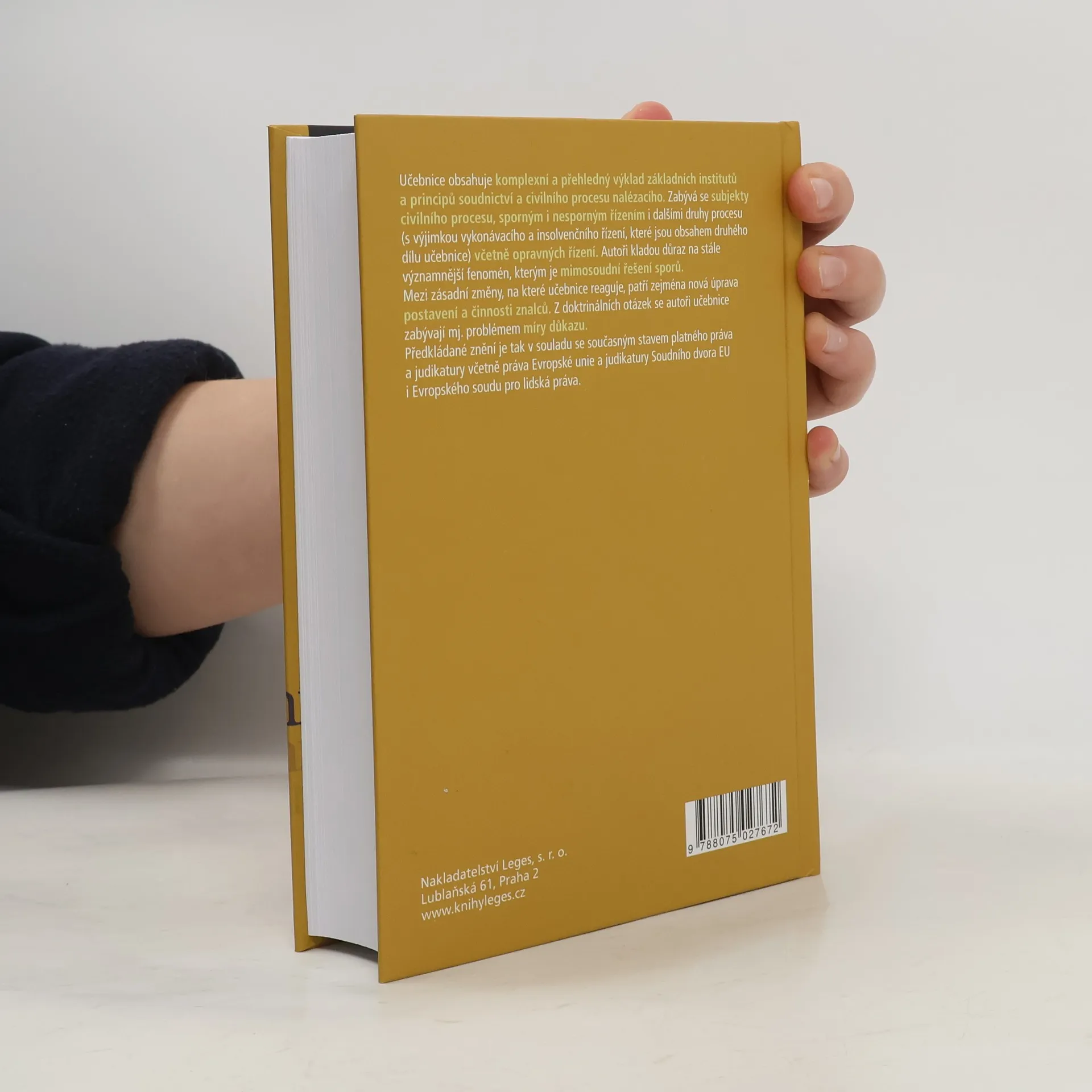Učebnice obsahuje komplexní a přehledný výklad základních institutů a principů soudnictví a civilního procesu nalézacího. Zabývá se subjekty civilního procesu, sporným i nesporným řízením i dalšími druhy procesu (s výjimkou vykonávacího a insolvenčního řízení, které jsou obsahem druhého dílu učebnice) včetně opravných řízení. Autoři kladou důraz na stále významnější fenomén, kterým je mimosoudní řešení sporů. Mezi zásadní změny, na které učebnice reaguje, patří zejména nová úprava postavení a činnosti znalců. Z doktrinálních otázek se autoři učebnice zabývají mj. problémem míry důkazu. Předkládané znění je tak v souladu se současným stavem platného práva a judikatury včetně práva Evropské unie a judikatury Soudního dvora EU i Evropského soudu pro lidská práva.