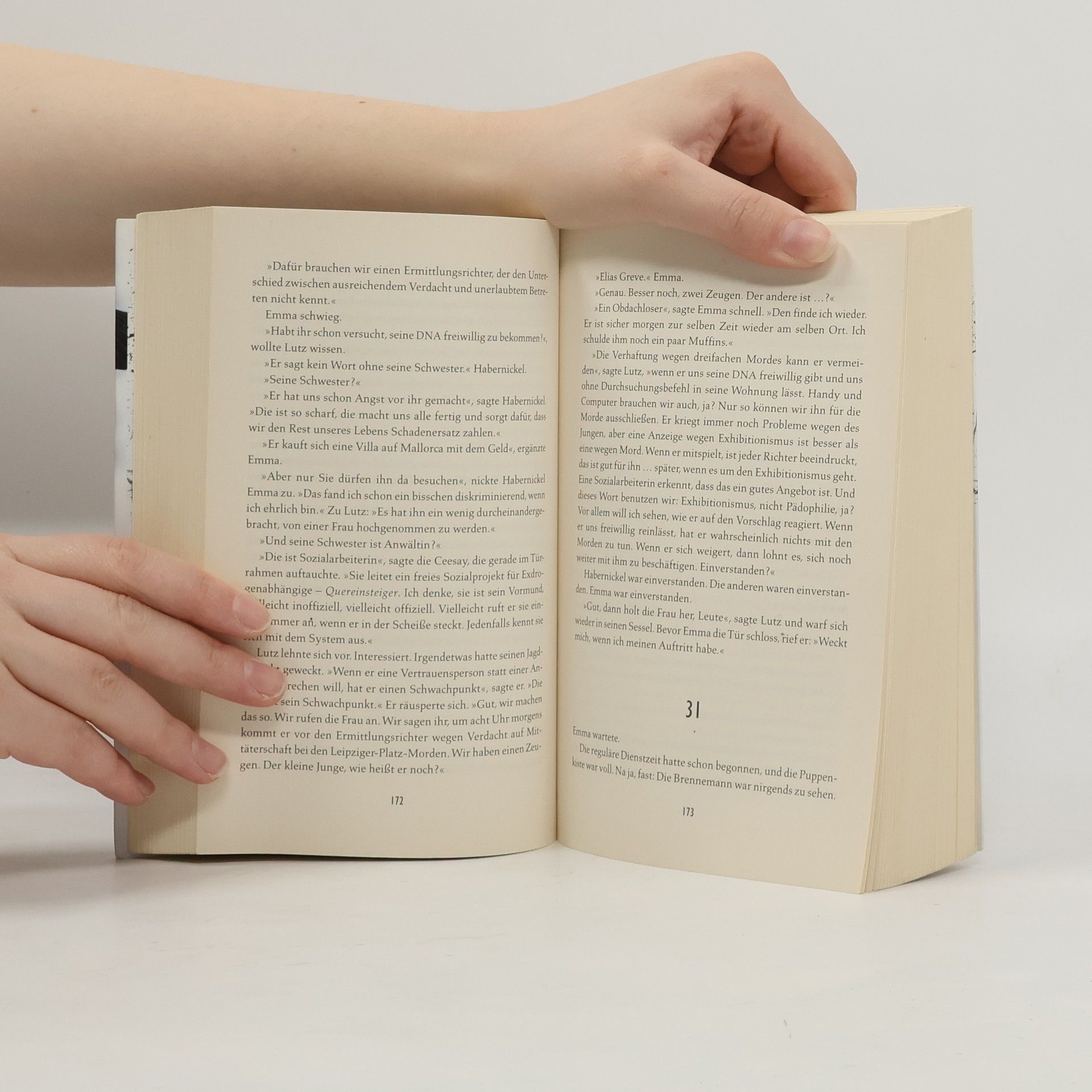 Berlin, Potsdamer Platz. Beim Klettern auf einem Baugerüst macht ein Junge eine grausame Entdeckung: Drei Leichen, einbandagiert in Panzertape, hängen in schwindelerregender Höhe an den Gerüststangen. Sie sehen aus wie Mumien und scheinen in dieselbe Richtung zu blicken, als würden sie auf etwas warten. Als die menschenscheue Fallanalystin Emma Carow auf den Fall angesetzt wird, ist ihr schnell klar, dass er für ihre Karriere entscheidend ist. Doch je fester sie sich verbeißt, desto mehr droht ein altes Trauma sie in den Abgrund zu ziehen.