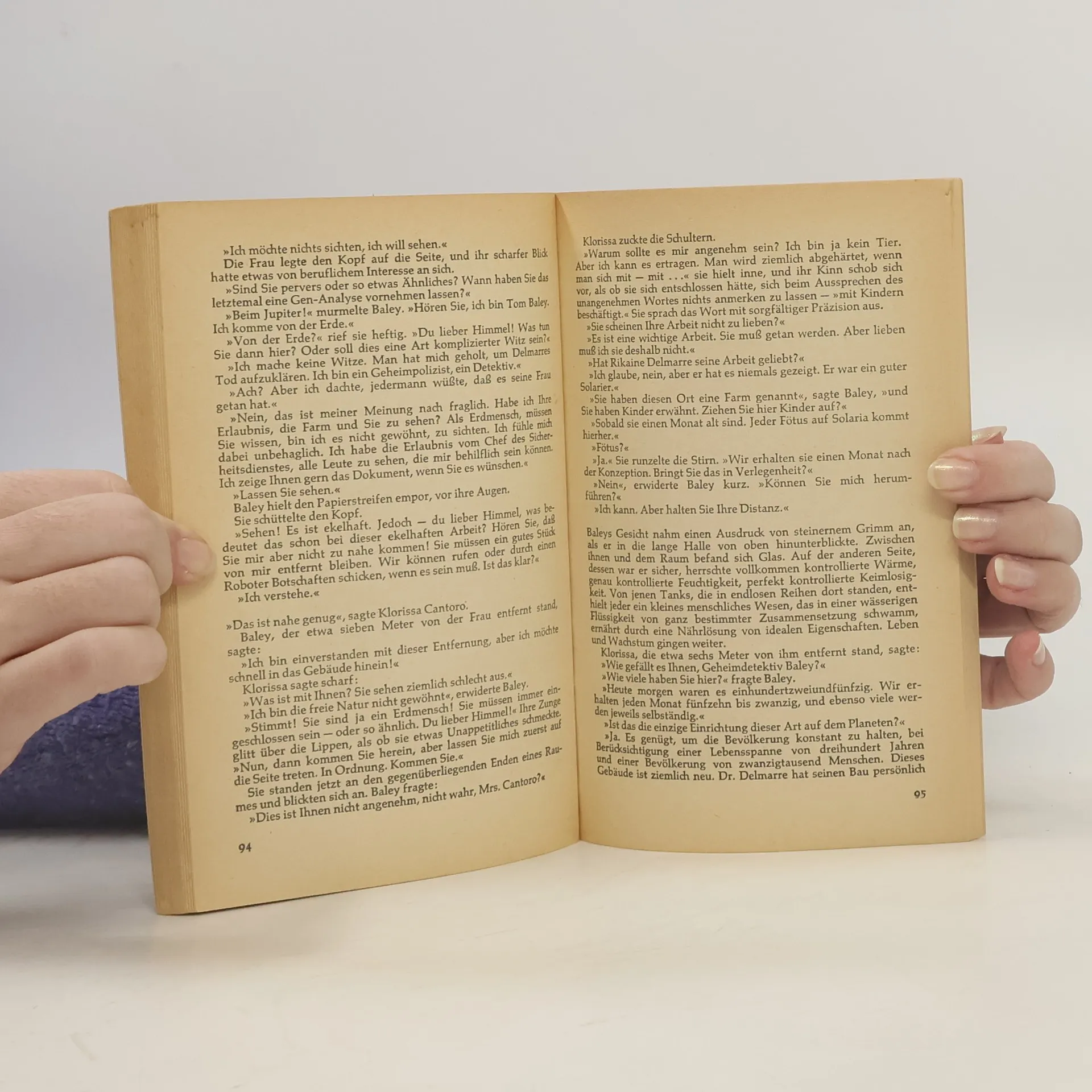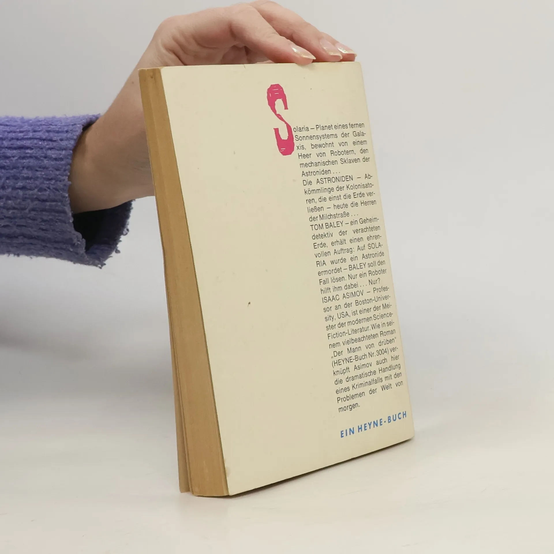 Mordermittlungen auf einer fremden Welt Zu Beginn des 30. Jahrhunderts ist die Menschheit gespalten: Die einen leben auf der Erde, zusammengepfercht unter riesigen Kuppeln, die anderen – die sogenannten „Spacer“ – haben sich auf fremden Planeten niedergelassen. Doch mit der räumlichen Trennung entwickeln sich auch ganz unterschiedliche Weltanschauungen und Gesellschaftsstrukturen. Das erlebt Ermittler Elijah Baley am eigenen Leib, als er nach Solaria geschickt wird, um zusammen mit seinem alten Partner R. Daneel Olivaw den Mord einem Wissenschaftler aufzuklären. Solarias gesellschaftliche Ordnung unterscheidet sich gravierend von der auf der Erde: persönlicher Kontakt unter Menschen ist verpönt und es gibt wesentlich mehr Roboter als Menschen. Doch am meisten zu kämpfen hat Baley mit der weiten, offenen Landschaft, deren Anblick er als Bewohner der irdischen Kuppelstädte nicht gewohnt ist …