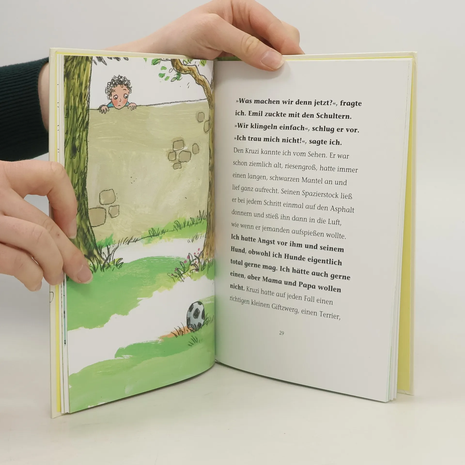 Ich heiße Fred und ich habe ein Wunder erlebt. Gut, nur ein kleines Wunder, aber es ist wirklich so passiert! Fred und Emil treffen sich nachmittags oft zum Fußballspielen. Wenn nur Herr Kruzinna, der blöde Nachbar, nicht wäre! Der kann Kinder nicht leiden und fußballspielende schon gar nicht. Als eines Tages ein Ball in seinem Garten landet, rückt er ihn nicht mehr raus. Was sollen die Jungs nun machen? Da fällt Fred Zachäus ein, von dem er im Religionsunterricht gehört hat. Wenn an der Geschichte was dran ist, müssen sie doch nur nett zu Herrn Kruzinna sein, um den Ball von ihm zurückzubekommen. Also schreiben Fred und seine Freunde einen Brief … Antje Damm erzählt den Konflikt zwischen den Kindern und dem Nachbarn parallel zur biblischen Zachäusgeschichte. Diese inspiriert die beiden Freunde zu einer ungewöhnlichen Idee, die für Fred tatsächlich in einem kleinen Wunder endet. Katja Gehrmanns Illustrationen nehmen ganz die Perspektive der Kinder ein und spiegeln deren Stimmungslage treffend wider.