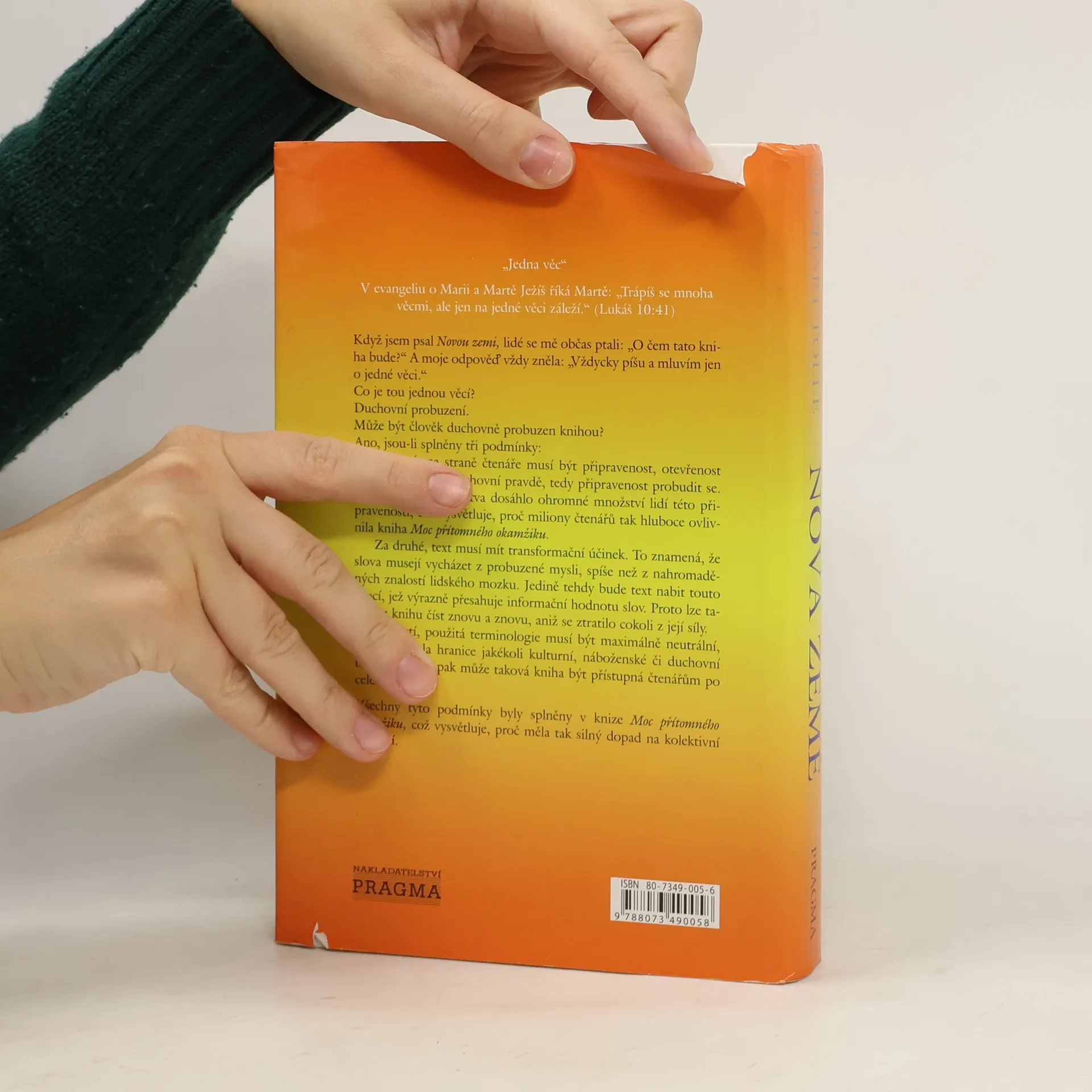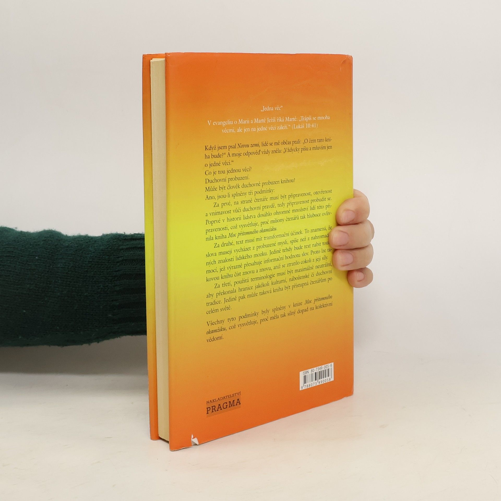 Eckhart Tolle staví na obrovském úspěchu knihy Moc přítomného okamžiku a bere nás na cestu mimo naše životy, aby nám ukázal, že máme šanci vybudovat nový svět plný lásky. Vyžaduje to velký posun ve vědomí od současné identifikace s naším egem ke zcela novému způsobu vnímání toho, kdo jsme. Aby se to mohlo stát, musí struktura lidské mysli projít zásadní transformací. V této nové knize Tolle ukazuje, jak taková transformace může proběhnout nejen v nás, ale i ve světě kolem nás. Tím, že vykresluje podstatu tohoto posunu vědomí, Tolle detailně ukazuje, jak naše egoistické uvažování funguje. Poté nás jemně a pomocí velmi praktických termínů vede k novému vědomí. Dojdeme až k poznání toho, kým vlastně jsme, což je mnohem významnější než to, co jsme si dosud mysleli.