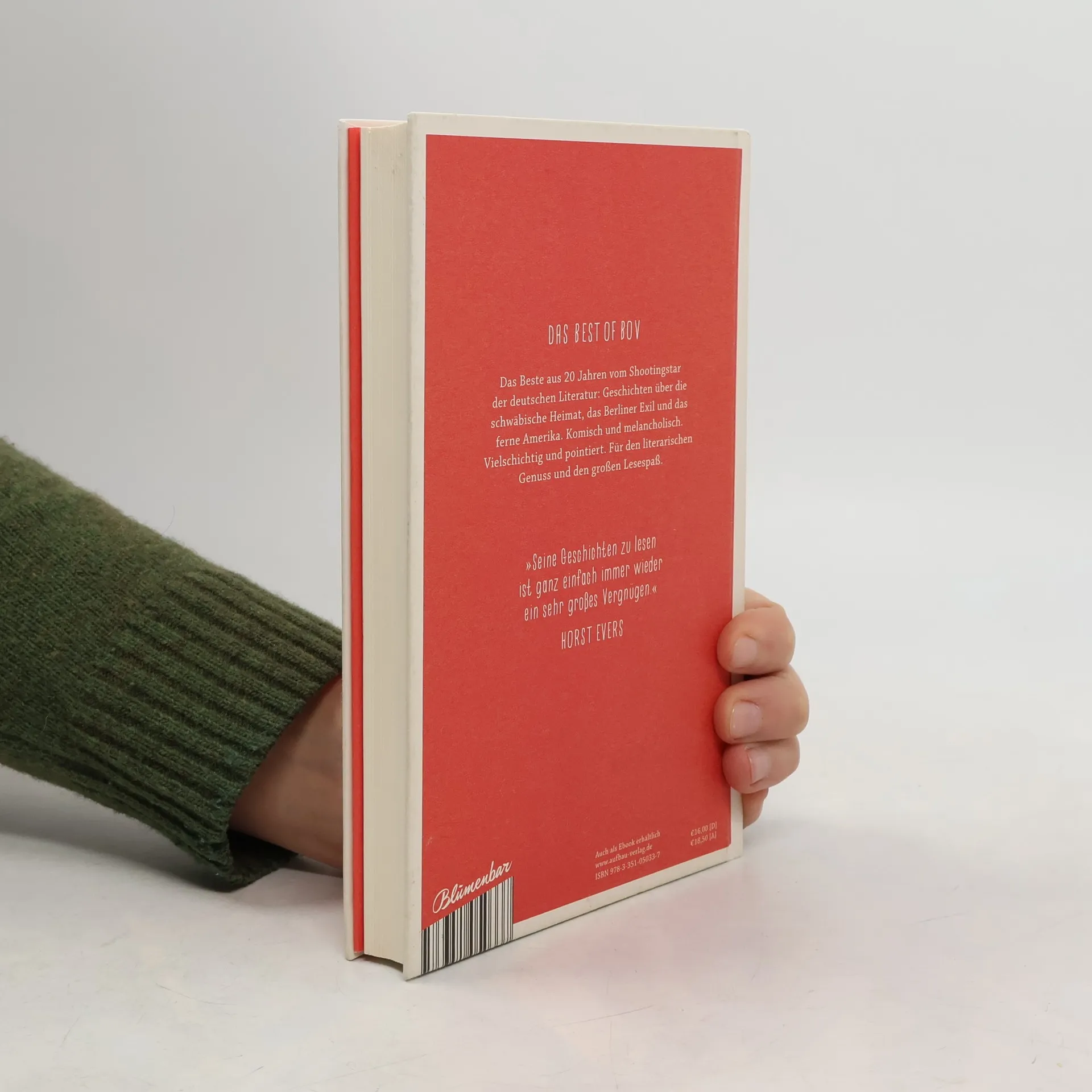 Das Best of Bov. Das Beste aus 20 Jahren vom Shootingstar der deutschen Literatur: Geschichten über die schwäbische Heimat, das Berliner Exil und das ferne Amerika. Komisch und melancholisch. Vielschichtig und pointiert. Für den literarischen Genuss und den großen Lesespaß. „Seine Geschichten zu lesen ist ganz einfach immer wieder ein sehr großes Vergnügen.“ Horst Evers. Gerade als seine Mutter den Führerschein macht, lässt der Gemeinderat eine Fußgängerampel aufstellen, mit fatalen Folgen für Mensch und Tier. Und ausgerechnet während des Urlaubs mit seiner Freundin in einem amerikanischen Nationalpark zieht ein heftiger Sturm auf. Und mitten im Zug auf halber Strecke zum Satireabend nach Frankfurt stürzen die Zwillingstürme ein. Egal ob Mütter oder Söhne, Lokaljournalisten oder Bankdirektoren, Münzsammler oder Apotheker - die Figuren in Bov Bjergs Geschichten haben eins gemeinsam: Für ihren Lebensweg gibt es keinen Verkehrsfunk. Schwäbische Alb, Berlin, Amerika. Das sind ihre Koordinaten. Aber was unterwegs passiert, damit müssen sie irgendwie allein fertig werden. Mit großer Einfühlsamkeit spürt Bov Bjerg den kleinen und großen Schicksalsschlägen des Lebens nach und sorgt mit seinem besonderen Humor dafür, dass man am Ende trotzdem lacht. Die in diesem Buch veröffentlichten Geschichten waren bis auf eine in dem E-Book „Ohne Brille kann ich recht und links nicht unterscheiden“ enthalten.