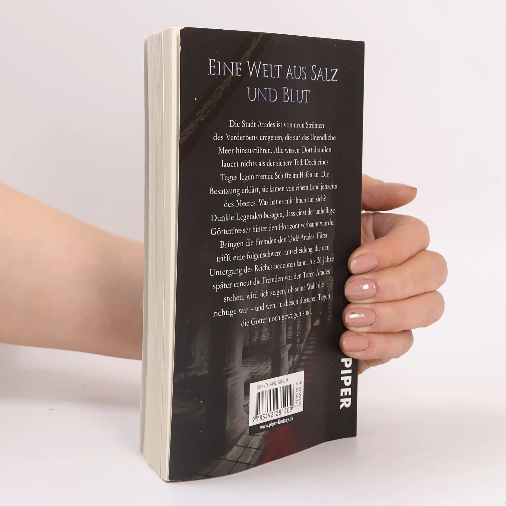 Das Fürstentum Arades ist von neun Strömen des Verderbens umgeben, die auf das Unendliche Meer hinausführen. Alle wissen: Dort draußen lauert nichts anderes als die Monstrositäten der Tiefe – und der sichere Tod. Doch eines Tages legen fremde Schiffe im Hafen der Hauptstadt an. Die Besatzung erklärt, sie kämen von einem Land jenseits des Meeres. Was hat es mit ihnen auf sich? Dunkle Legenden besagen, dass einst der unheilige Götterfresser, der Feind aller Götter, hinter das Unendliche Meer verbannt wurde. Bringen die Fremden Verderben über das Land? Arades' Fürst muss eine Entscheidung treffen – doch diese kann den Untergang des Reiches bedeuten.