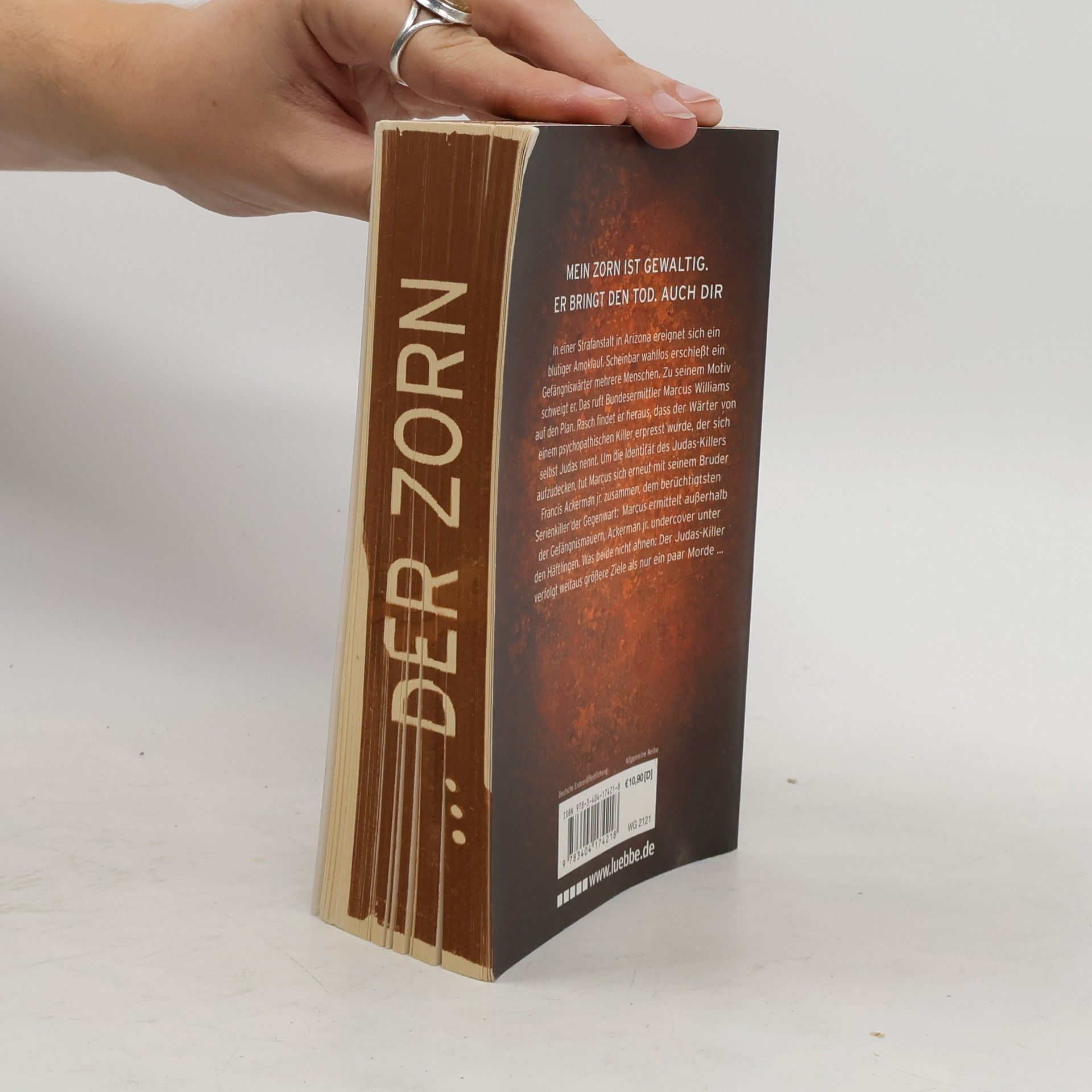 Der 4. Band der Bestseller-Reihe um den Serienkiller Francis Ackerman junior Mein Zorn ist gewaltig. Er bringt den Tod. Auch dir. In einer Strafanstalt in Arizona ereignet sich ein blutiger Amoklauf. Scheinbar wahllos erschießt ein Gefängniswärter mehrere Menschen. Zu seinem Motiv schweigt er. Das ruft Bundesermittler Marcus Williams auf den Plan. Rasch findet er heraus, dass der Wärter von einem psychopathischen Killer erpresst wurde, der sich selbst Judas nennt. Um die Identität des Judaskillers aufzudecken, tut Marcus sich erneut mit seinem Bruder Francis Ackerman junior zusammen, dem berüchtigtsten Serienkiller der Gegenwart: Marcus ermittelt außerhalb der Gefängnismauern, Ackerman junior undercover unter den Häftlingen. Was beide nicht ahnen: Der Judaskiller verfolgt weitaus größere Ziele als nur ein paar Morde ...