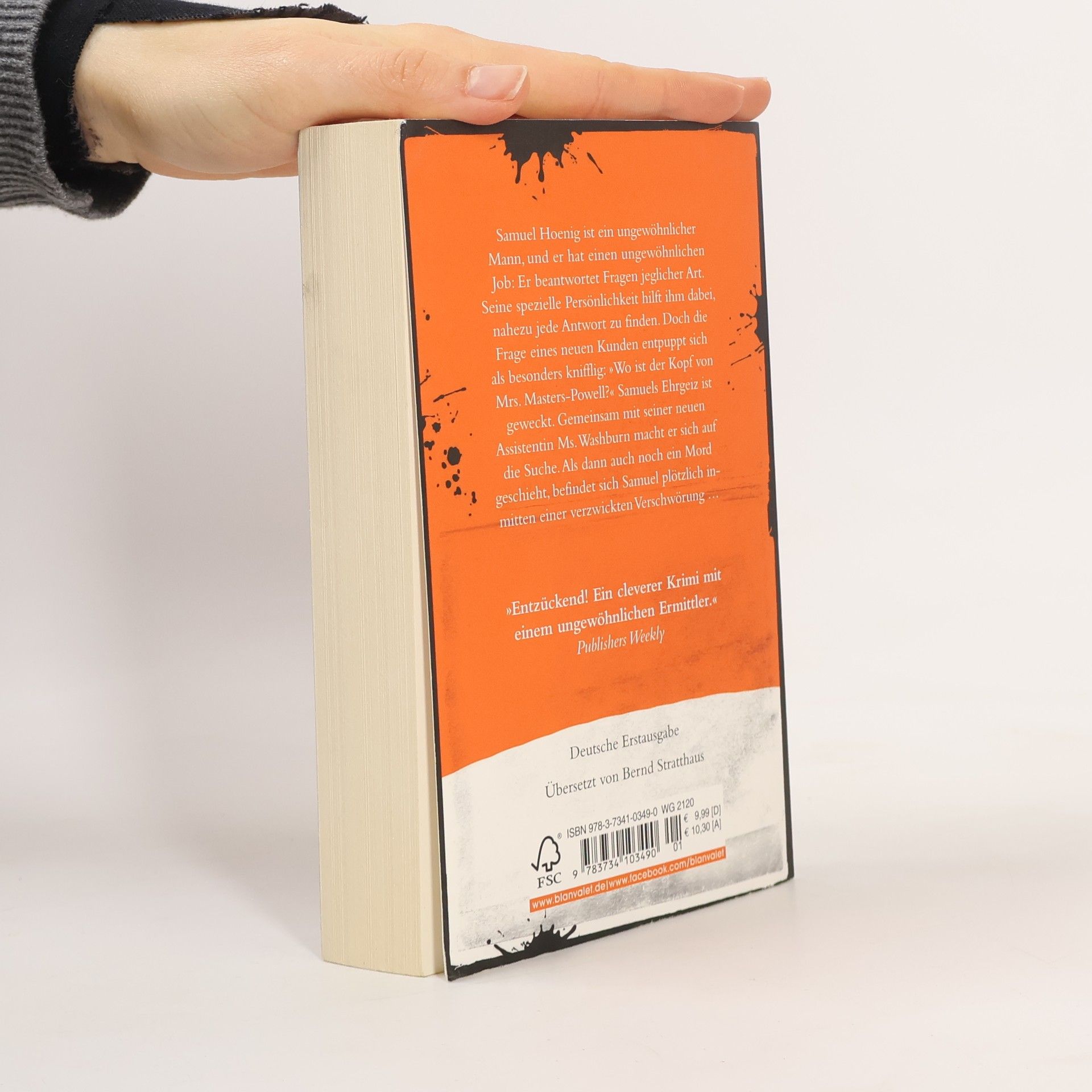 »Wo ist der Kopf von Mrs. Masters-Powell?« Samuel Hoenig ist ein ungewöhnlicher Mann, und er hat einen ungewöhnlichen Job: Er beantwortet Fragen jeglicher Art. Seine spezielle Persönlichkeit hilft ihm dabei, nahezu jede Antwort zu finden. Doch die Frage eines neuen Kunden entpuppt sich als besonders knifflig: »Wo ist der Kopf von Mrs. Masters-Powell?« Samuels Ehrgeiz ist geweckt. Gemeinsam mit seiner neuen Assistentin Ms. Washburn macht er sich auf die Suche. Als dann auch noch ein Mord geschieht, befindet sich Samuel plötzlich inmitten einer verzwickten Verschwörung …