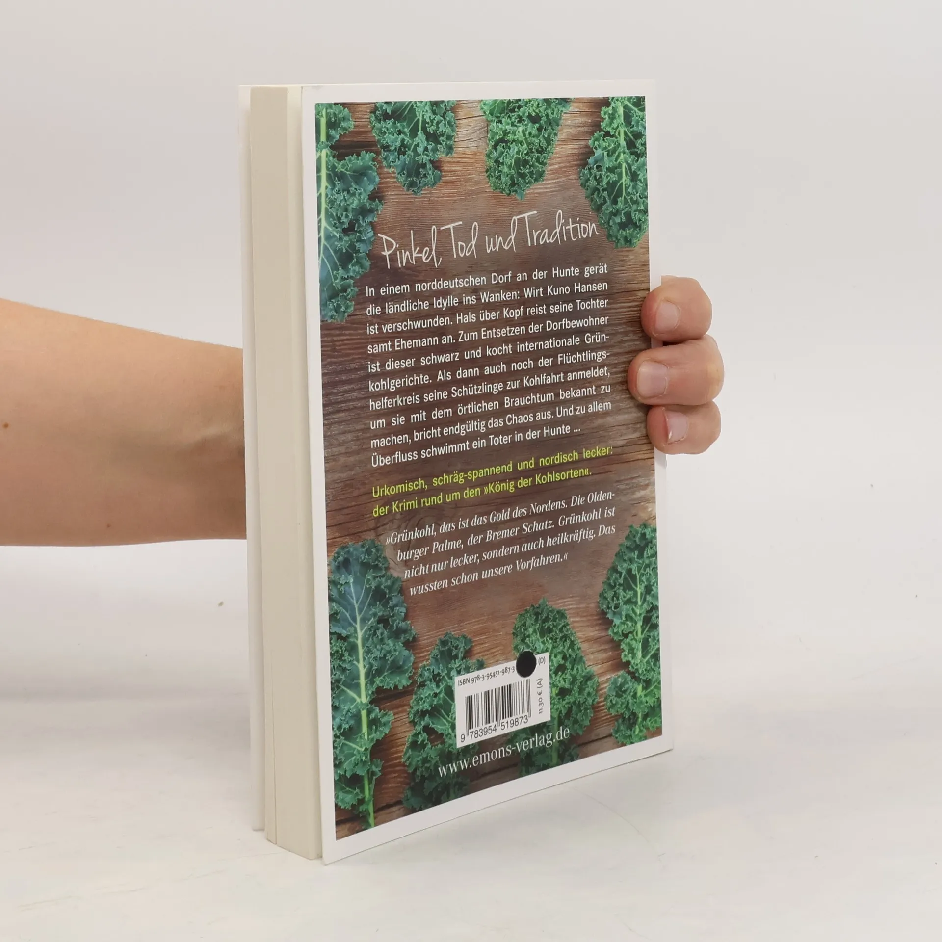 Urkomisch, schräk-spannend und nordisch lecker: der Krimirund um den „König der Kohlsorten“. In einem norddeutschen Dorf an der Hunte gerät die ländliche Idylle ins Wanken: Wirt Kuno Hansen ist verschwunden. Hals über Kopf reist seine Tochter samt Ehemann an. Zum Entsetzten der Dorfbewohner ist dieser schwarz und kocht internationale Grünkohlgerichte. Als dann auch noch der Flüchtlingshelferkreis seine Schützlinge zur Kohlfahrt anmeldet, um sie mit dem örtlichen Brauchtum bekannt zu machen, bricht entgültig das Chaos aus. Uns zu allem Überfluss schwimmt ein Toter in der Hunte....