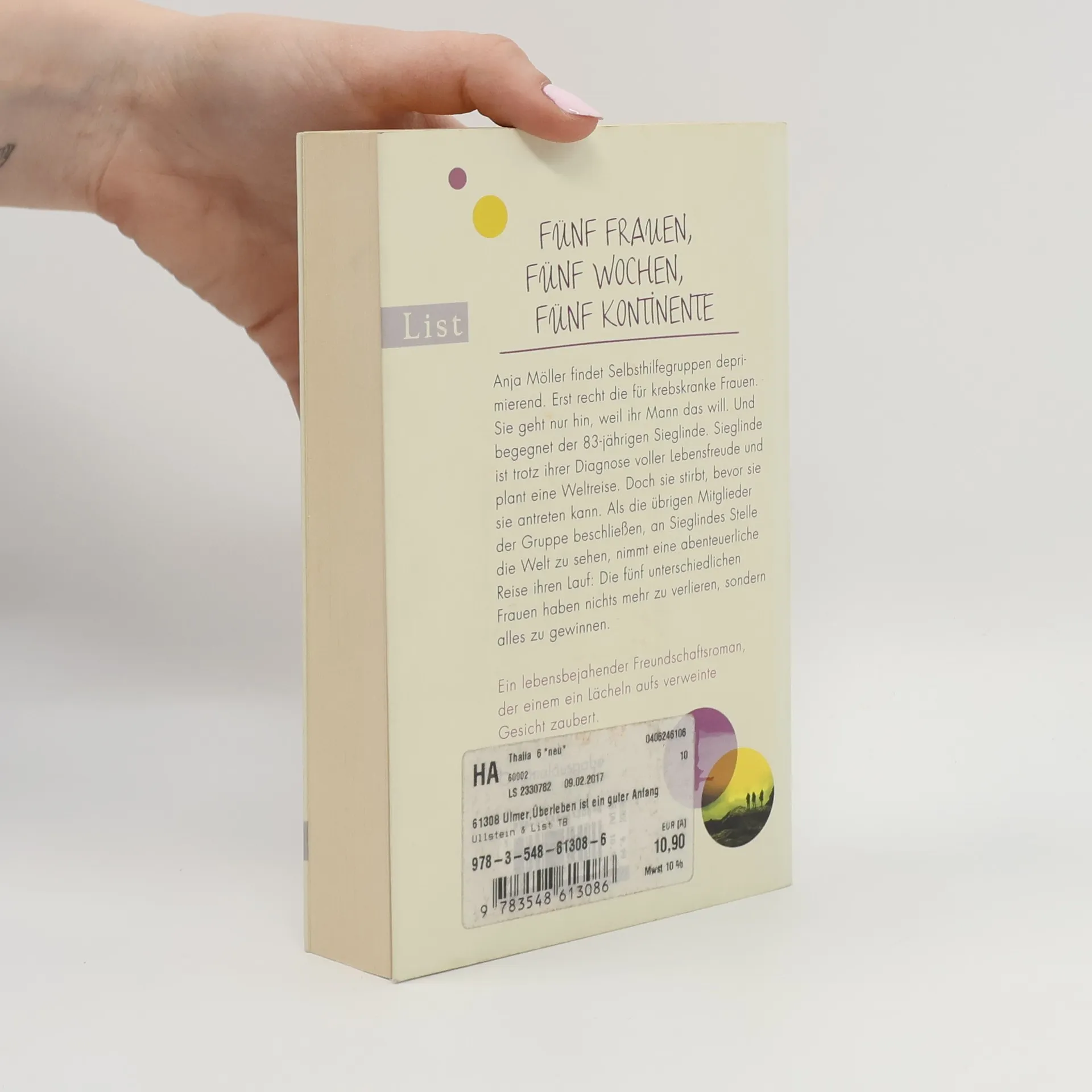 Selbsthilfegruppen sind deprimierend, findet Anja Möller. Und die für krebskranke Frauen erst recht. Sie geht nur hin, weil ihr Mann das will. Und trifft dort auf die 83-jährige Sieglinde. Sieglinde ist trotz ihrer Diagnose voller Lebensfreude und plant eine Weltreise. Doch bevor sie die antreten kann, stirbt sie. Als die übrigen fünf absolut unterschiedlichen Frauen der Selbsthilfegruppe beschließen, an ihrer Stelle die Welt zu sehen, nimmt eine abenteuerliche Reise ihren Lauf: Sie haben nichts mehr zu verlieren, sondern alles zu gewinnen.