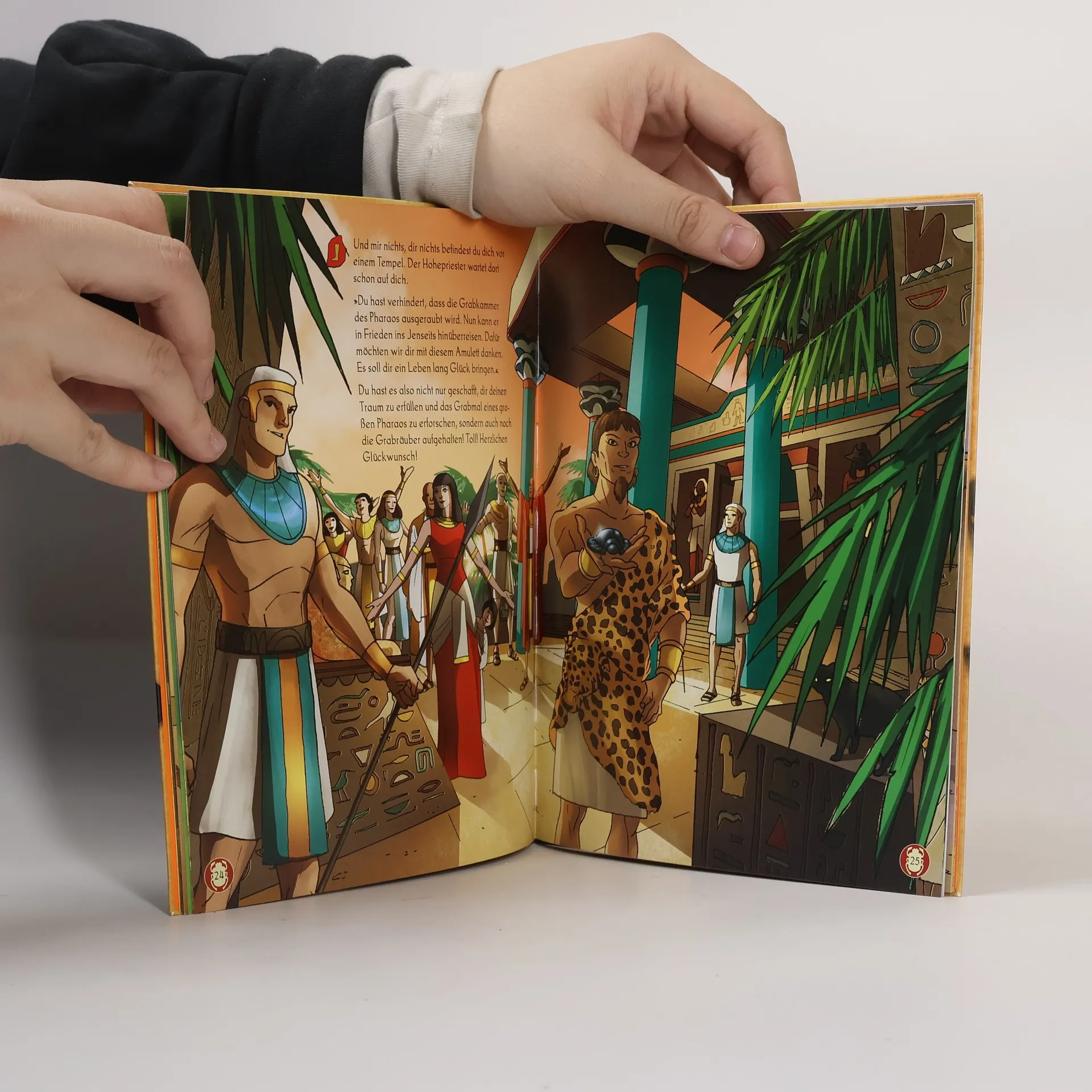 Bist du bereit für ein faszinierendes Abenteuer voller Rätsel und Gefahren, das dein geschichtliches Wissen bis an die Grenzen herausfordert? Ja! Dann bringe deinen Auftrag zu Ende und werde ein echter Ägypten-Profi! »Grabkammer des Schreckens« ist kein gewöhnliches Buch: Du liest die Seiten nicht wie gewohnt der Reihenfolge nach – 1, 2, 3 … –, sondern springst vor und zurück, während du verschiedene Rätsel löst. Auch wenn du dabei ab und zu deinen Weg aus den Augen verlieren solltest: Die Geschichte bringt dich immer wieder genau an den richtigen Punkt zurück.