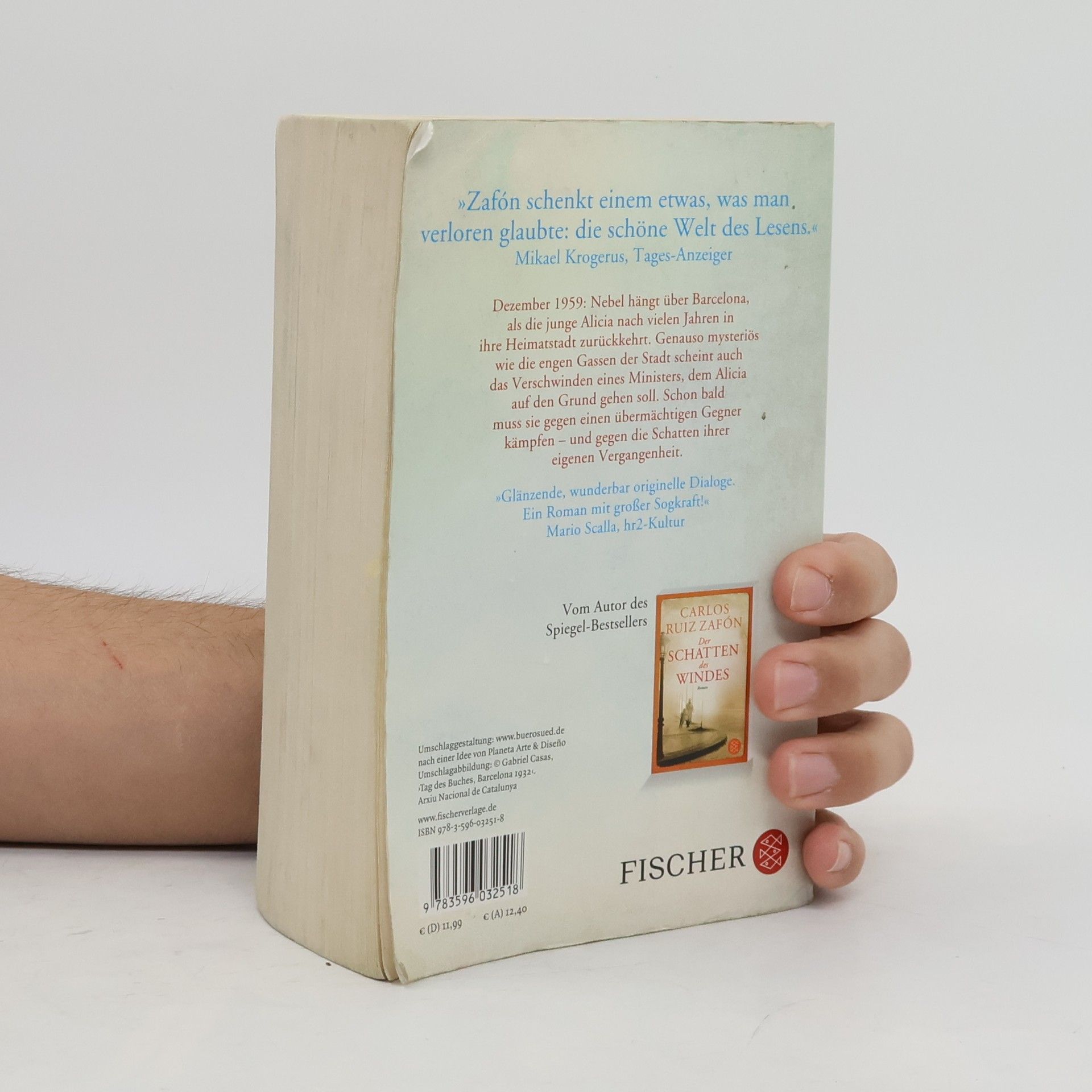 Spanien in den dunklen Tagen des Franco-Regimes: Ein Auftrag der Politischen Polizei führt die eigenwillige Alicia Gris von Madrid zurück in ihre Heimatstadt Barcelona. Unter größter Geheimhaltung soll sie das plötzliche Verschwinden des zwielichtigen Ministers Mauricio Valls aufklären, dessen dunkle Vergangenheit als Direktor des Gefängnisses von Montjuïc ihn nun einzuholen scheint. In seinem Besitz befand sich ein geheimnisvolles Buch aus der Serie Das Labyrinth der Lichter, das Alicia auf schmerzliche Weise an ihr eigenes Schicksal erinnert. Es führt sie in die Buchhandlung Sempere & Söhne, tief in Barcelonas Herz. Der Zauber dieses Ortes nimmt sie gefangen, und wie durch einen Nebel steigen Bilder ihrer Kindheit in ihr auf. Doch die Antworten, die Alicia findet, öffnen die Tür zu einer finsteren Intrige und bringen all jene in Gefahr, die Alicia am meisten liebt.