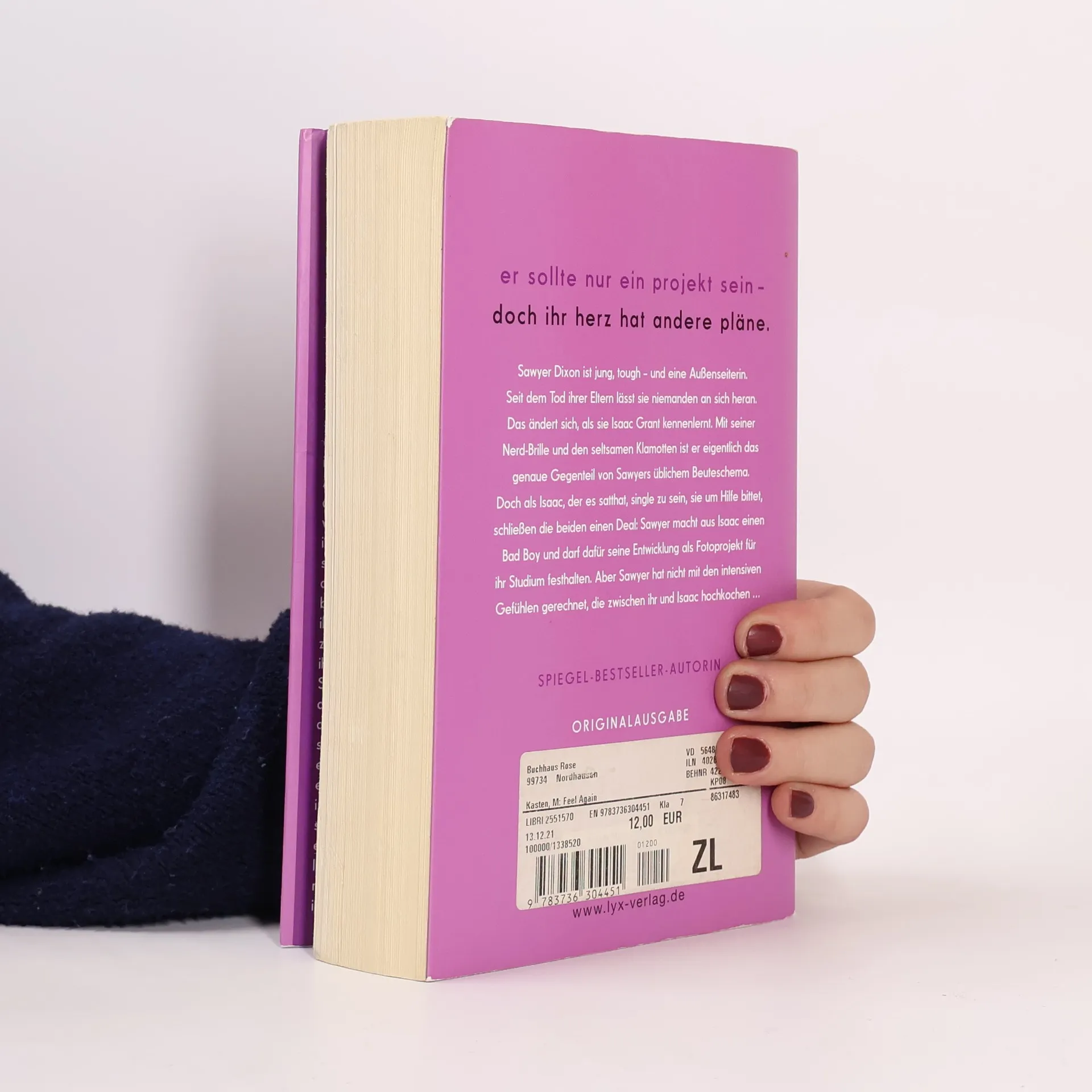 Er sollte nur ein Projekt sein - doch ihr Herz hat andere Pläne. Sawyer Dixon ist jung, tough - und eine Außenseiterin. Seit dem Tod ihrer Eltern lässt sie niemanden an sich heran. Das ändert sich, als sie Isaac Grant kennenlernt. Mit seiner Nerd-Brille und den seltsamen Klamotten ist er eigentlich das genaue Gegenteil von Sawyers üblichem Beuteschema. Doch als Isaac, der es satthat, single zu sein, sie um Hilfe bittet, schließen die beiden einen Deal: Sawyer macht aus Isaac einen Bad Boy und darf dafür seine Entwicklung als Fotoprojekt für ihr Studium festhalten. Aber Sawyer hat nicht mit den intensiven Gefühlen gerechnet, die zwischen ihr und Isaac hochkochen ... „Lache, weine und verliebe dich. Mona Kasten hat ein Buch geschrieben, das man nicht aus der Hand legen kann!“ ANNA TODD über „Begin Again“ Band 3 der Erfolgsreihe von Platz-1-SPIEGEL-Bestseller-Autorin Mona Kasten Die „Again“-Reihe: 1. Begin Again 2. Trust Again 3. Feel Again