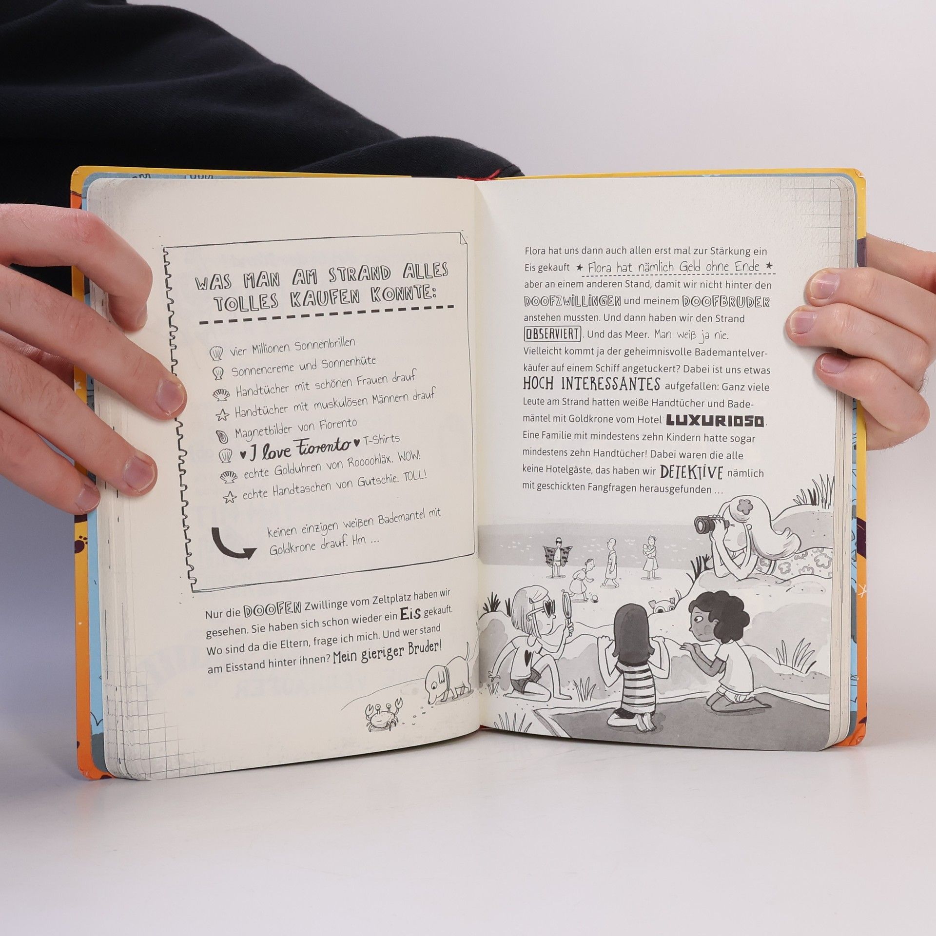 Detektivarbeit am Strand Wie es der Zufall so will, trifft sich Pennys gesamte Detektivbande nebst Hunden Mailie und Dschastin im italienischen Fiorente, um dort die Sommerferien zu verbringen. Und das ist auch gut so. In dem Luxushotel, in dem Floras Familie logiert, gehen nämlich seltsame Dinge vor sich: Haufenweise verschwinden teure Handtücher und Bademäntel mit dem eingestickten Luxurioso-Emblem. Hat der trinkgeldgierige Kellner etwas damit zu tun? Oder die Rezeptionsdame mit dem hohen Haarturm? Oder Pennys Nachbarin aus Deutschland, die im Hotel einen Aushilfsjob als Zimmermädchen hat? Mit ihren beiden Spürhunden sowie den Zwillingsjungs vom Campingplatz legen Penny und Co. sich auf die Lauer … Zu diesem Buch finden Sie Quizfragen auf antolin. de