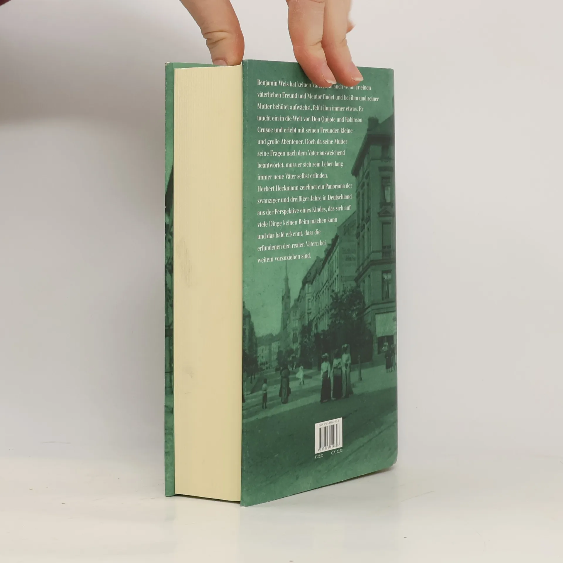 Benjamin Weis erblickt 1919 in Frankfurt als Sohn der ledigen Kanzleigehilfin Anna das Licht der Welt, vom Vater fehlt jede Spur. Der Anwalt Fritz Bernoulli nimmt sich der jungen Familie an, stellt Wohnung und Unterhalt zur Verfügung. So wächst Benjamin trotz der widrigen Umstände behütet in der Bergerstraße heran. Er taucht ein in die Welt von Don Quijote und Robinson Crusoe und erlebt mit seinen Freunden kleine und große Abenteuer. Doch da seine Mutter auf seine Fragen nach dem Vater ausweichend mit Märchen antwortet, muss sich Benjamin eben selbst immer neue Väter erfinden. Heckmann zeichnet ein Panorama der zwanziger und dreißiger Jahre in Deutschland aus der Perspektive eines Kindes, das sich auf viele Dinge keinen Reim machen kann. Warum sein Ziehvater als Vaterlandsverräter beschimpft wird, warum niemand einschreitet, als ein angeblicher Kommunist auf der Straße zusammengeschlagen wird, warum sein jüdischer Freund nach Amerika auswandern muss, auf diese Fragen erhält der jugendliche Benjamin immer noch keine Antworten. Und so lautet sein Fazit: »Ich scheiße auf alle Väter, die uns ein solches Leben eingebrockt haben.«