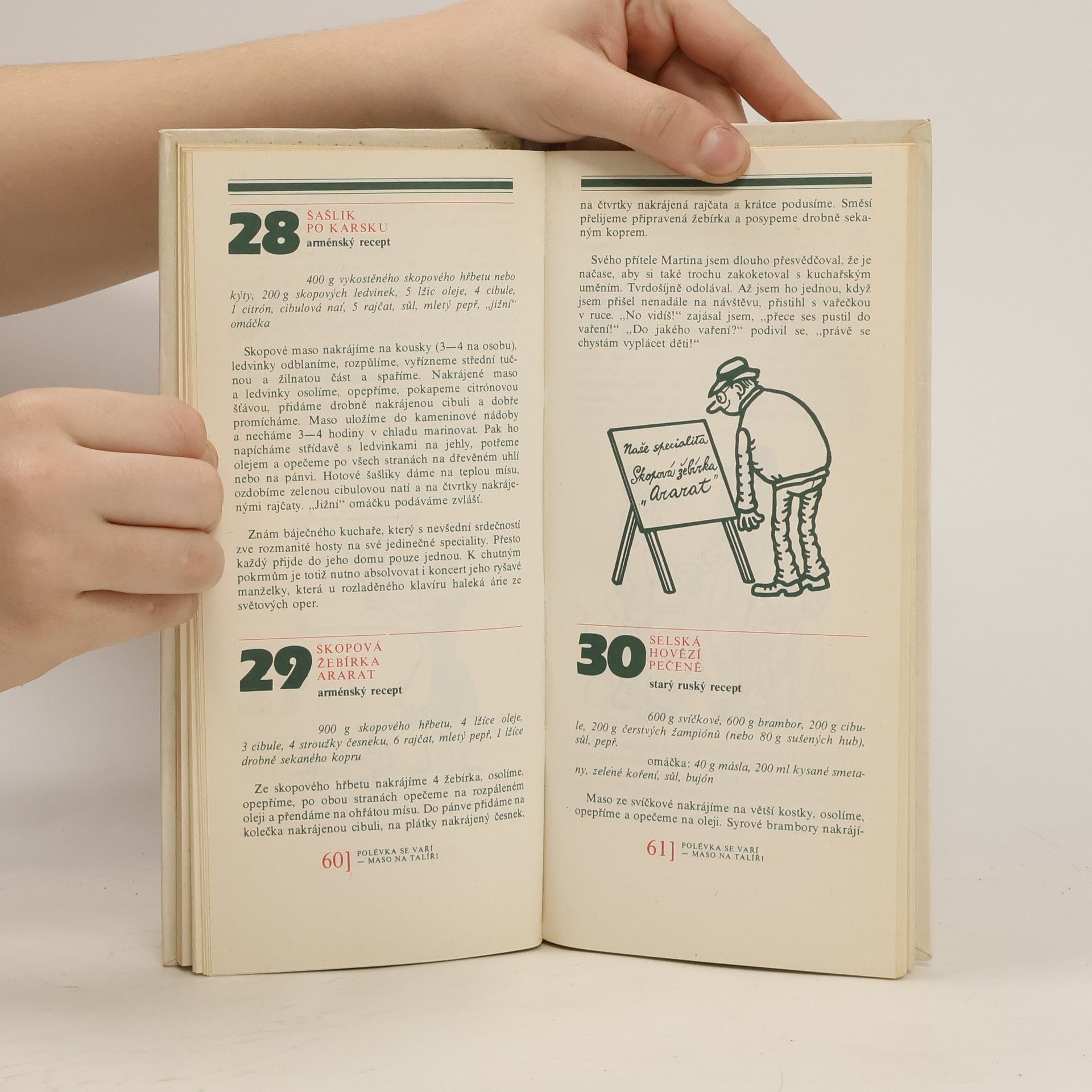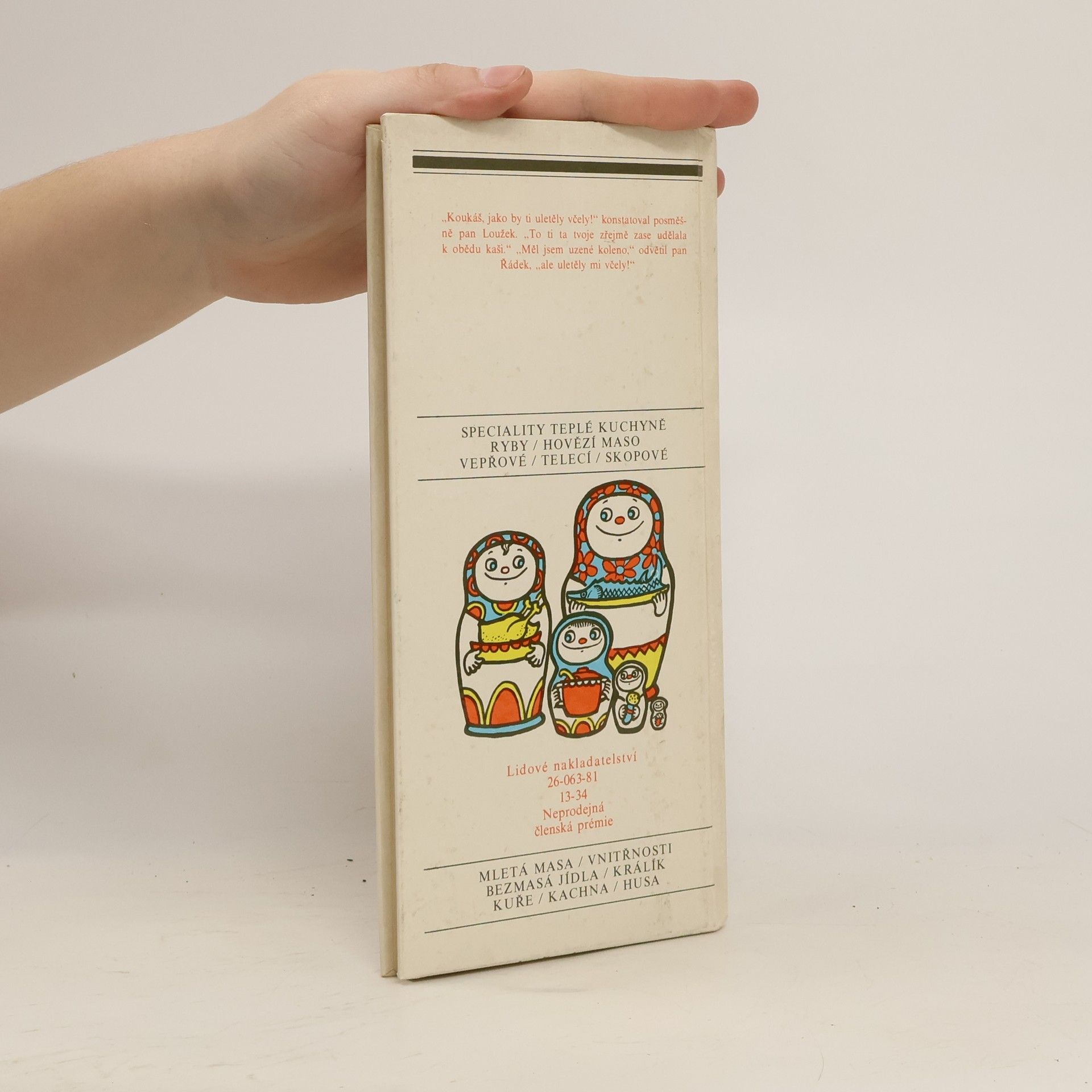 Speciality teplé kuchyně - Ryby - Hovězí maso - Vepřové - Telecí - Skopové - Mletá masa - Vnitřnosti - Bezmasá jídla - Králík - Kuře - Kachna - Husa.