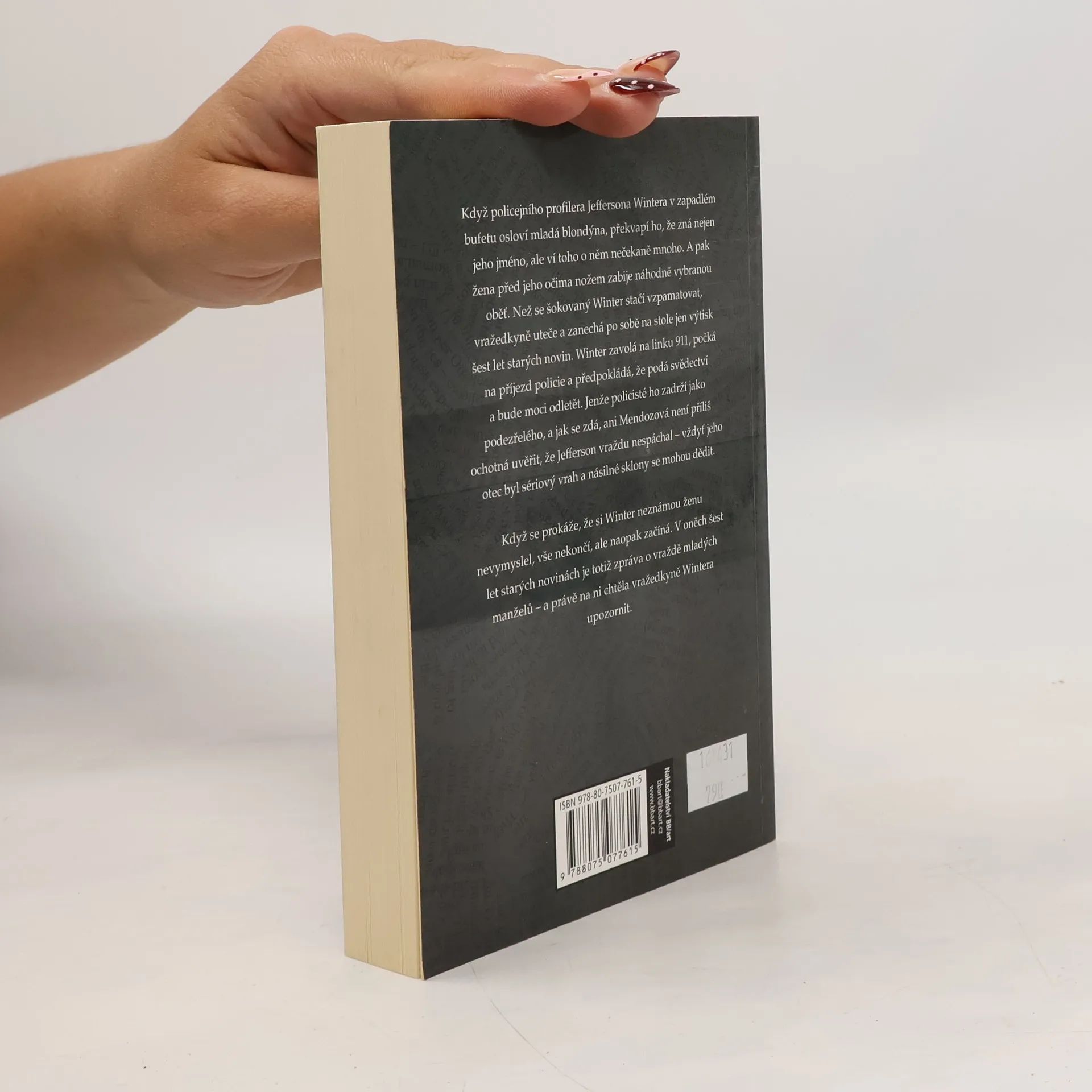 Poté co policejní profiler Jefferson Winter spolu se seržantkou Mendozovou v New Yorku odhalil a dopadl sadistického vraha mladých homosexuálů, odpočívá a připravuje se na další zakázku v Paříži.Trápí ho nespavost, a tak si několik nocí po sobě chodí posedět nad kávou do zapadlého bufetu. Když jej tam osloví mladá blondýna, překvapí ho, že zná nejen jeho jméno, ale ví toho o něm nečekaně mnoho. A pak žena před jeho očima nožem zabije náhodně vybranou oběť. Než se šokovaný Winter stačí vzpamatovat, vražedkyně uteče a zanechá po sobě na stole jen výtisk šest let starých novin. Winter zavolá na linku 911, počká na příjezd policie a předpokládá, že podá svědectví a bude moci odletět. Jenže policisté ho zadrží jako podezřelého, a jak se zdá, ani Mendozová není příliš ochotná uvěřit, že Jefferson vraždu nespáchal vždyť jeho otec byl sériový vrah a násilné sklony se mohou dědit.Když se prokáže, že si Winter neznámou ženu nevymyslel, vše nekončí, ale naopak začíná. V oněch šest let starých novinách je totiž zpráva o vraždě mladých manželů a právě na ni chtěla vražedkyně Wintera upozornit.