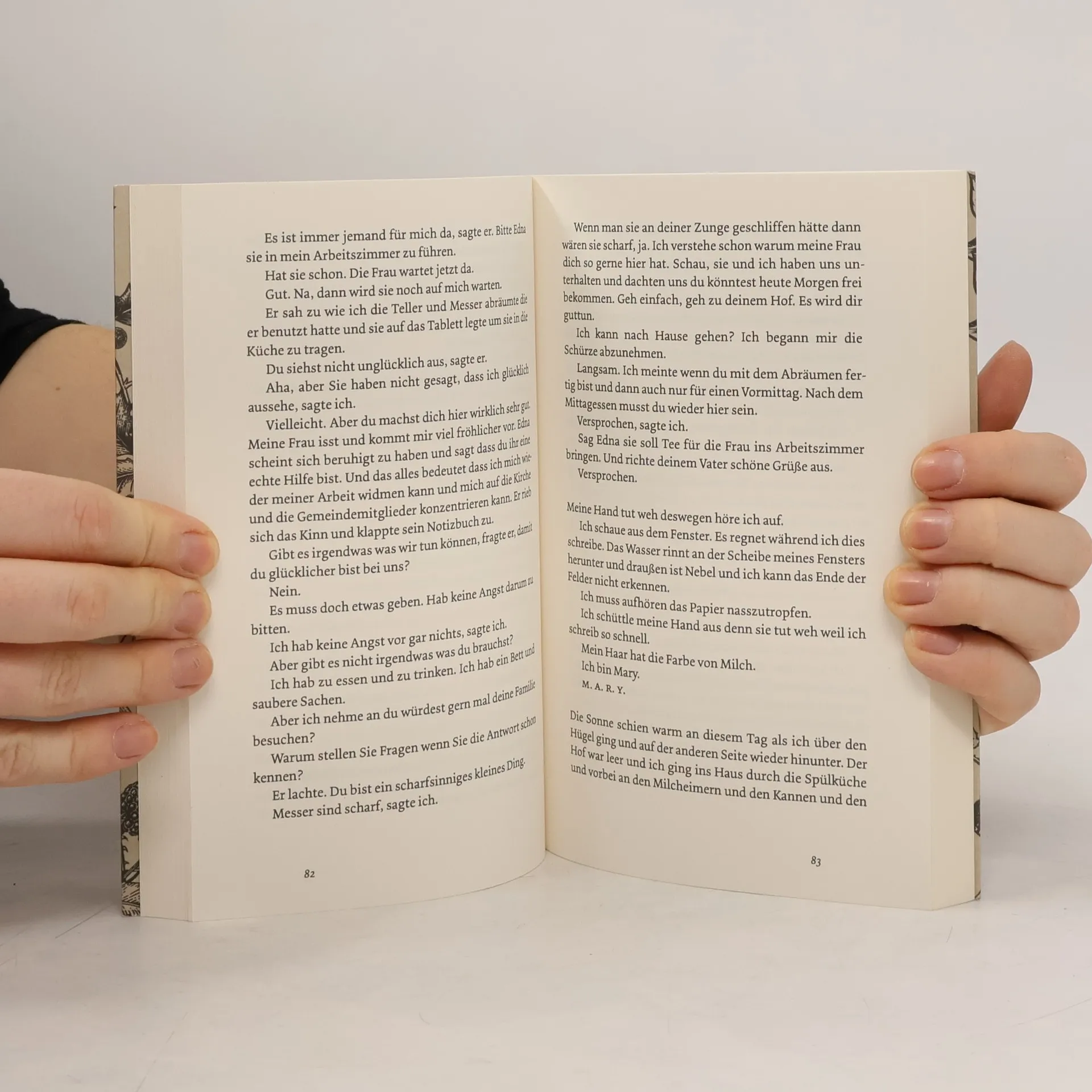 Mein Name ist Mary. Mein Haar hat die Farbe von Milch. Und dies ist meine Geschichte. Mary ist harte Arbeit gewöhnt. Sie kennt es nicht anders, denn ihr Leben auf dem Bauernhof der Eltern verläuft karg und entbehrungsreich. Doch dann ändert sich alles. Als sie fünfzehn wird, zieht Mary in den Haushalt des örtlichen Dorfpfarrers, um dessen Ehefrau zu pflegen und ihr Gesellschaft zu leisten – einer zarten, mitfühlenden Kranken. Bei ihr erfährt sie erstmals Wohlwollen und Anteilnahme. Mary eröffnet sich eine neue Welt. In ihrer einfachen, unverblümten Sprache erzählt sie, wie ihr Schicksal eine dramatische Wendung nimmt, als die Pfarrersfrau stirbt und sie plötzlich mit dem Hausherrn alleine zurückbleibt.