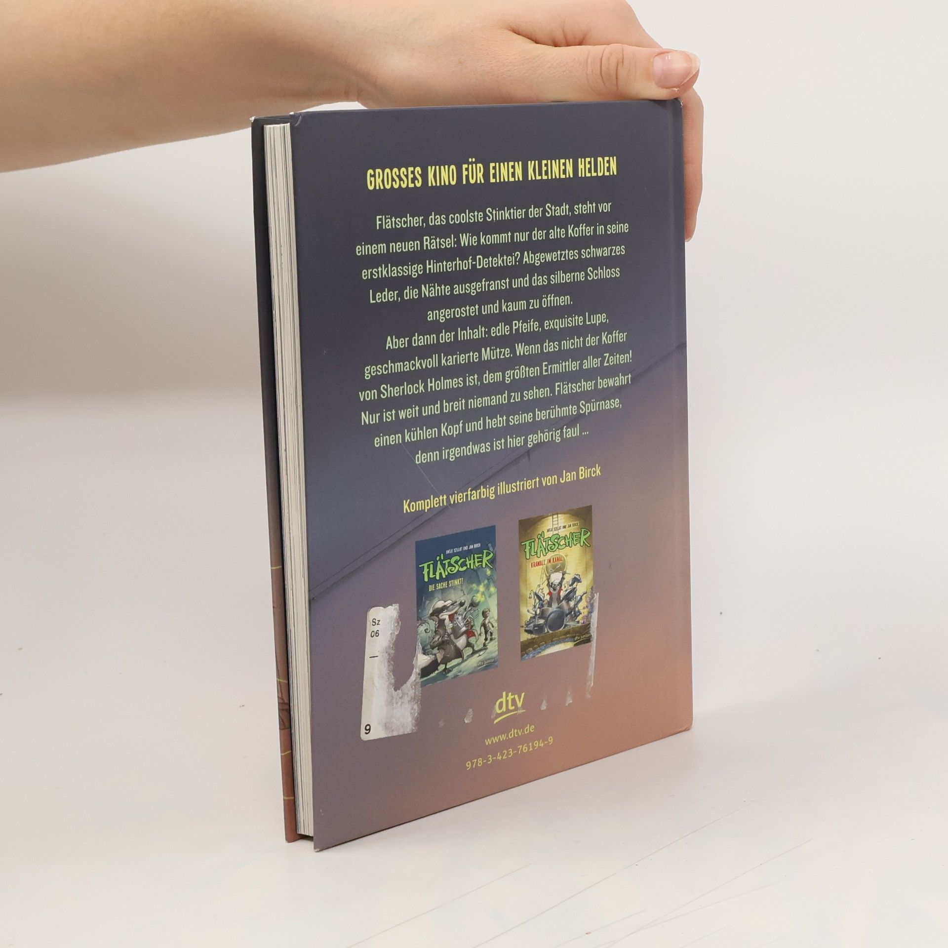 Neues aus der Hinterhof-Detektei Flätscher Flätscher, das coolste Stinktier der Stadt, steht vor einem neuen Rätsel: Wie kommt nur der alte Koffer in seine erstklassige Hinterhof- Detektei? Abgewetztes schwarzes Leder, die Nähte ausgefranst und das silberne Schloss angerostet und kaum zu öffnen. Aber dann der Inhalt: edle Pfeife, exquisite Lupe, geschmackvoll karierte Mütze. Wenn das nicht der Koffer von Sherlock Holmes, dem größten Ermittler aller Zeiten, ist. Nur ist weit und breit niemand zu sehen. Flätscher bewahrt einen kühlen Kopf und hebt seine berühmte Spürnase, denn irgendwas ist hier gehörig faul. Zu diesem Buch finden Sie Quizfragen auf antolin. de