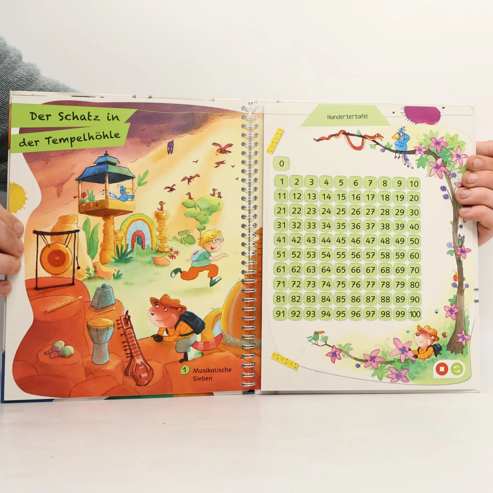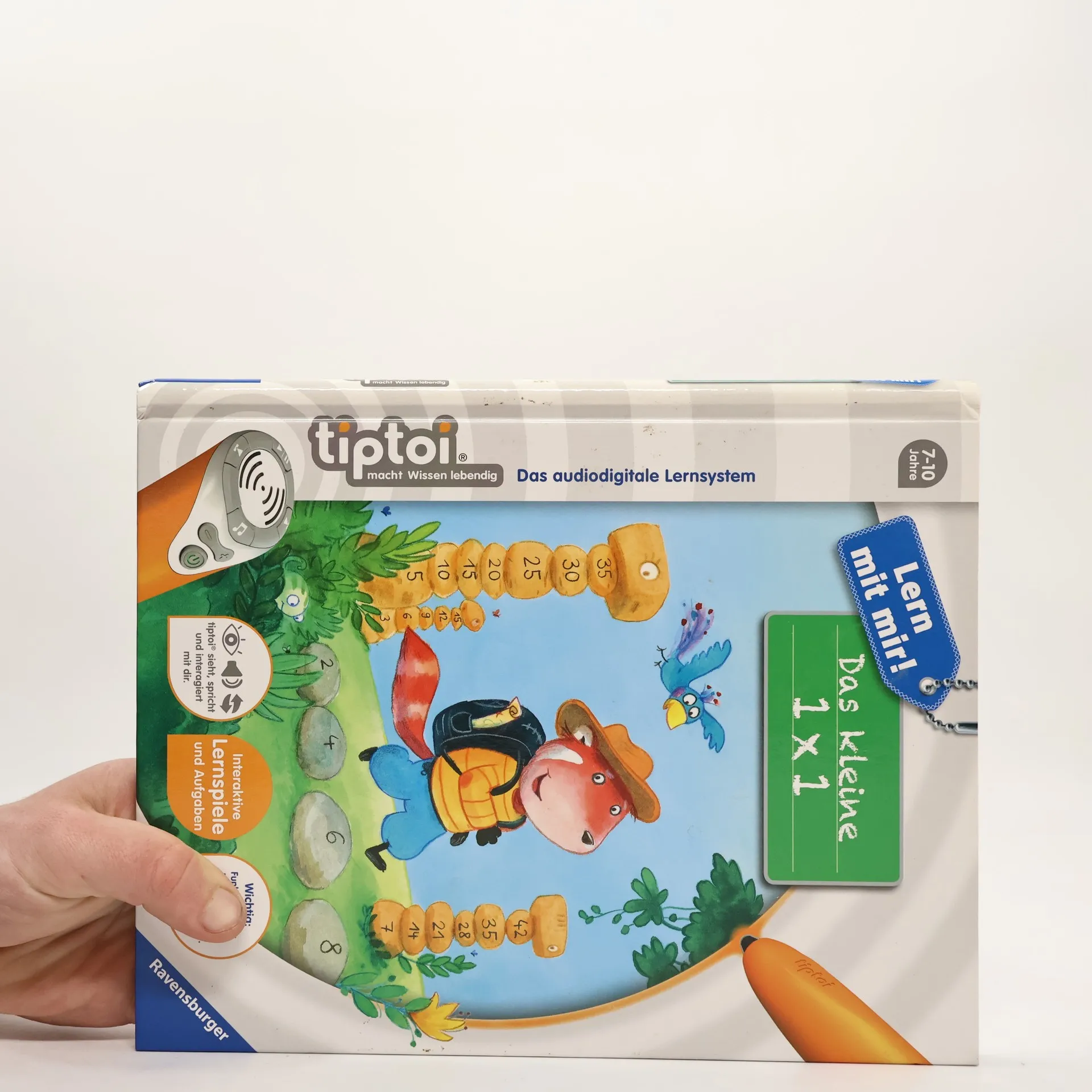 So macht Rechnen Spaß! Leni und David machen sich gemeinsam mit Abenteurer Marvin und Mathegenie Kurt auf die Suche nach dem großen Schatz im Einmaleins-Gebirge. Auf ihrem Weg gelangen sie in eine fantastische Höhlenwelt, in der sie zahlreiche Rechenaufgaben lösen und kniffelige Hindernisse überwinden müssen. Am Ende kommen die vier dem Geheimnis des Schatzes in einer verfallenen Tempelruine auf die Spur. Mit der Reihe tiptoi Lern mit mir! erleben die Kinder spielerisch, interaktiv und selbstständig verschiedene Lernthemen für die Grundschule. In den Bänden der Reihe können sie so Deutsch- und Mathematik-Inhalte für die 1. Klasse vertiefen, das kleine 1 x 1 üben oder Deutschland mit seinen Gebirgen, Städten und Sehenswürdigkeiten kennenlernen. Alle Inhalte werden kindgerecht und in Bezug auf die Lehrpläne der jeweiligen Fächer vermittelt. In jedem Buch gibt es viele knifflige und lustige Aufgaben in zahlreichen Varianten und mit motivierender Lösungskontrolle. Dies sorgt für wiederholte Beschäftigung und nachhaltigen Lernerfolg. Lustige Geräusche und spannende Geschichten runden das interaktive Erlebnis ab. Die Reihe ist somit die ideale Unterstützung zum Aneignen und selbständigen Vertiefen des Schulstoffs. tiptoi-Stift nicht enthalten. Muss separat erworben werden.