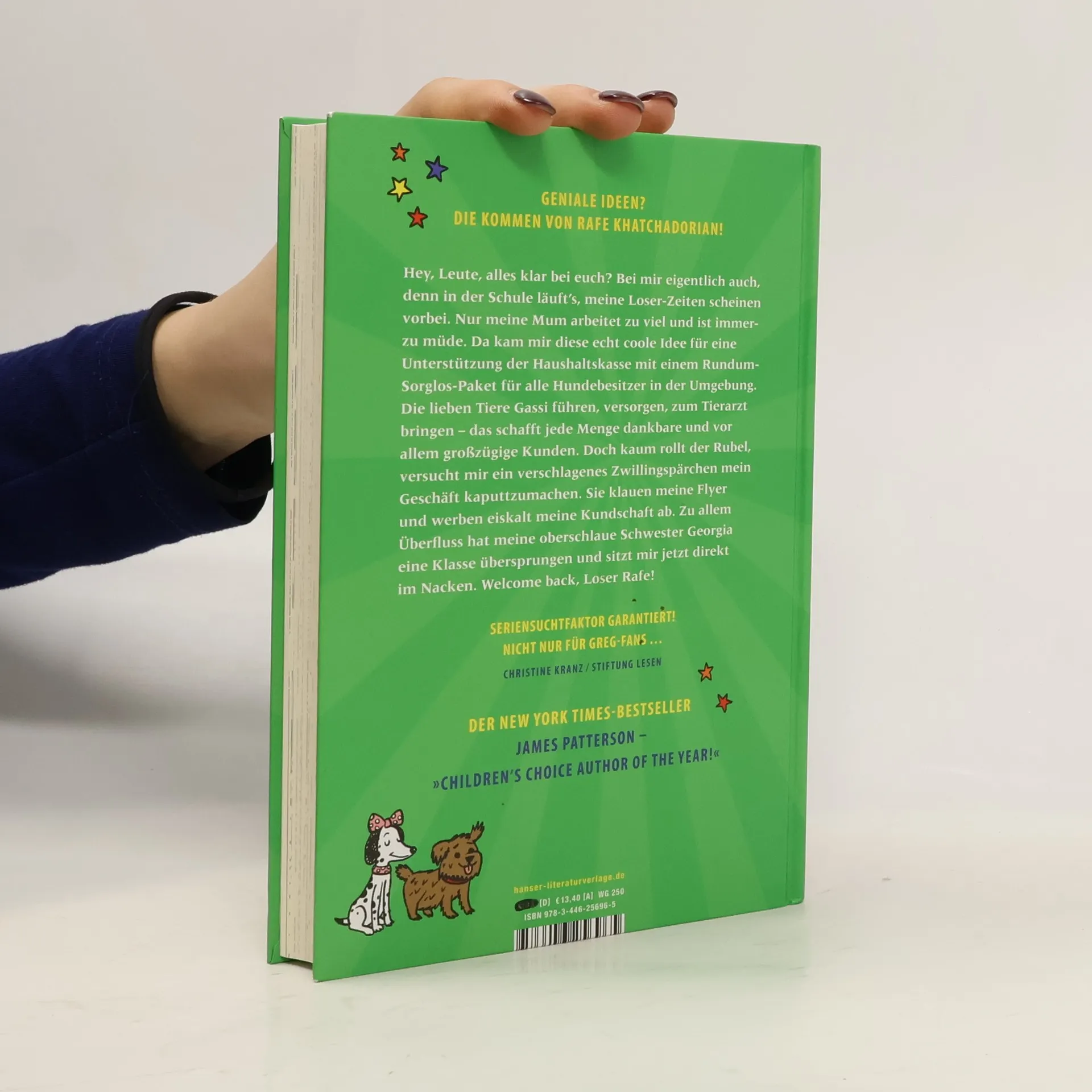 Rafes Loser-Zeiten scheinen vorbei. Er gehört zu den angesagten Kids der Schule! Doch es gibt ein neues Problem: Seine Familie hat finanzielle Sorgen. Fieberhaft überlegt Rafe, wie er Geld ranschaffen kann, und kommt auf die coole Idee eines Rundum-Sorglos-Pakets für jeden Hund (und vor allem dessen Besitzer!) in der Umgebung. Die lieben Tierchen Gassi führen, füttern, zum Tierarzt bringen – das schafft jede Menge zufriedene und großzügige Kunden. Bis ein verschlagenes Zwillingspaar einen knallharten Konkurrenzkampf anzettelt und Rafes Geschäft torpediert. Zu allem Überfluss überspringt Rafes oberschlaue Schwester Georgia eine Klasse und sitzt Rafe jetzt direkt im Nacken. Welcome back, Loser Rafe!
