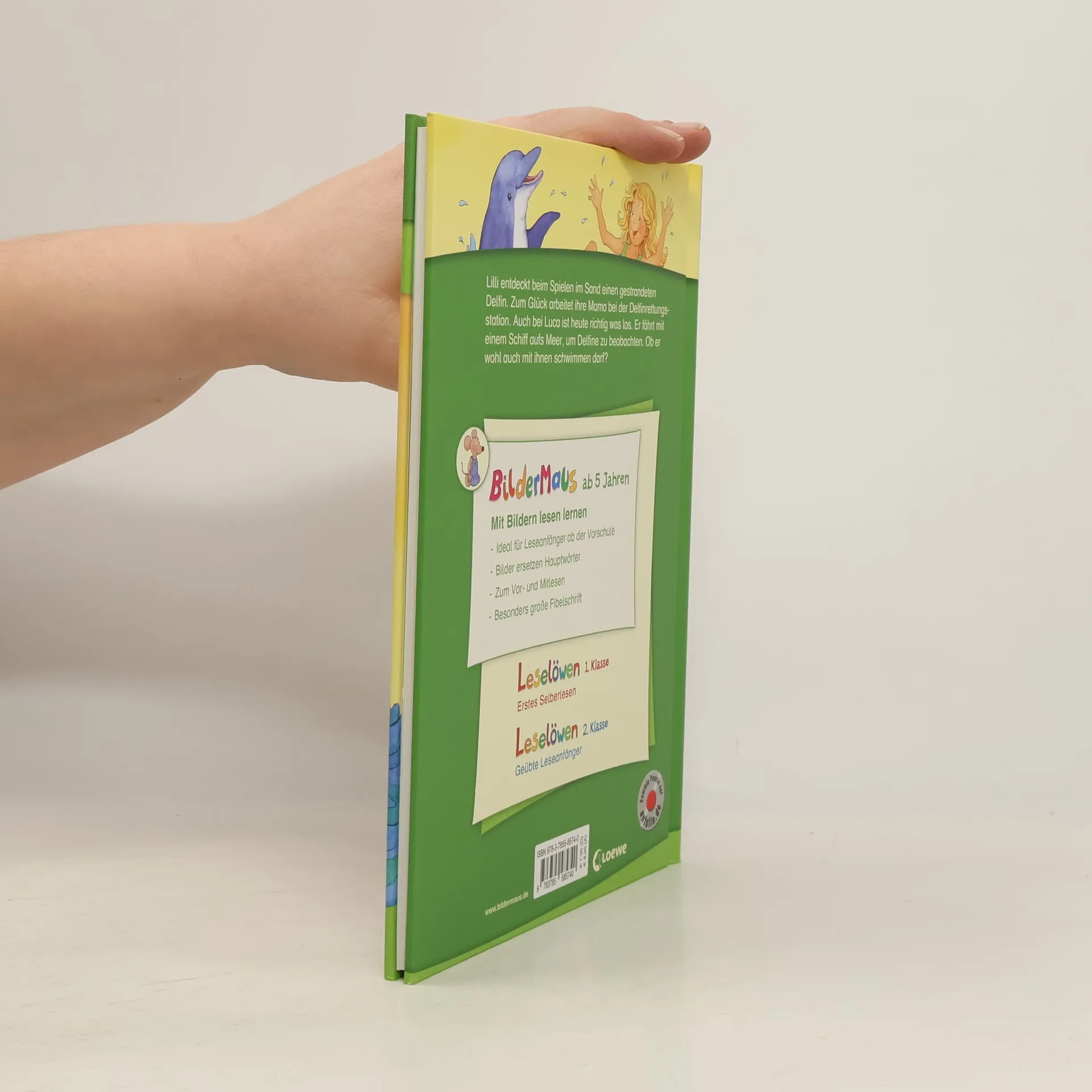 Lilli entdeckt beim Spielen im Sand einen gestrandeten Delfin . Zum Glück arbeitet ihre Mama bei der Delfinrettungsstation und kommt sofort, um dem Delfin zu helfen! Auch bei Luca ist heute richtig was los. Er fährt mit einem Schiff aufs Meer , um Delfine zu beobachten. Ob er wohl auch mit ihnen schwimmen darf? Mit der Reihe Bildermaus können Kinder schon ab 5 Jahren (Vorschule) spielerisch lesen lernen mit Bildern: Jedes Hauptwort ist durch ein Bild ersetzt. Schenken Sie Ihrem Kind ein Bildermaus -Buch und legen Sie damit den Grundstein zum erfolgreichen Lesenlernen. Spannende Abenteuer für Delfin-Fans Bewährtes Konzept: Seit über 25 Jahren begleitet die Bildermaus Kinder erfolgreich auf dem Weg zum Lesenlernen Über 4 Millionen verkaufte Exemplare in Deutschland, Österreich und der Schweiz Ideal für Leseanfänger ab der Vorschule, zum Vor- und Mitlesen Von Pädagogen mitentwickelt und empfohlen Bilder ersetzen Wörter Abwechslungsreiche und spannende Geschichten Jedes Buch ist genau auf die Interessen von Kindern im Vorschulalter ausgerichtet Einfache, kurze Sätze in großer Fibelschrift unterstützen optimal den Leselern-Prozess Abwechslungsreiche Quizfragen auf Antolin steigern die Lesemotivation