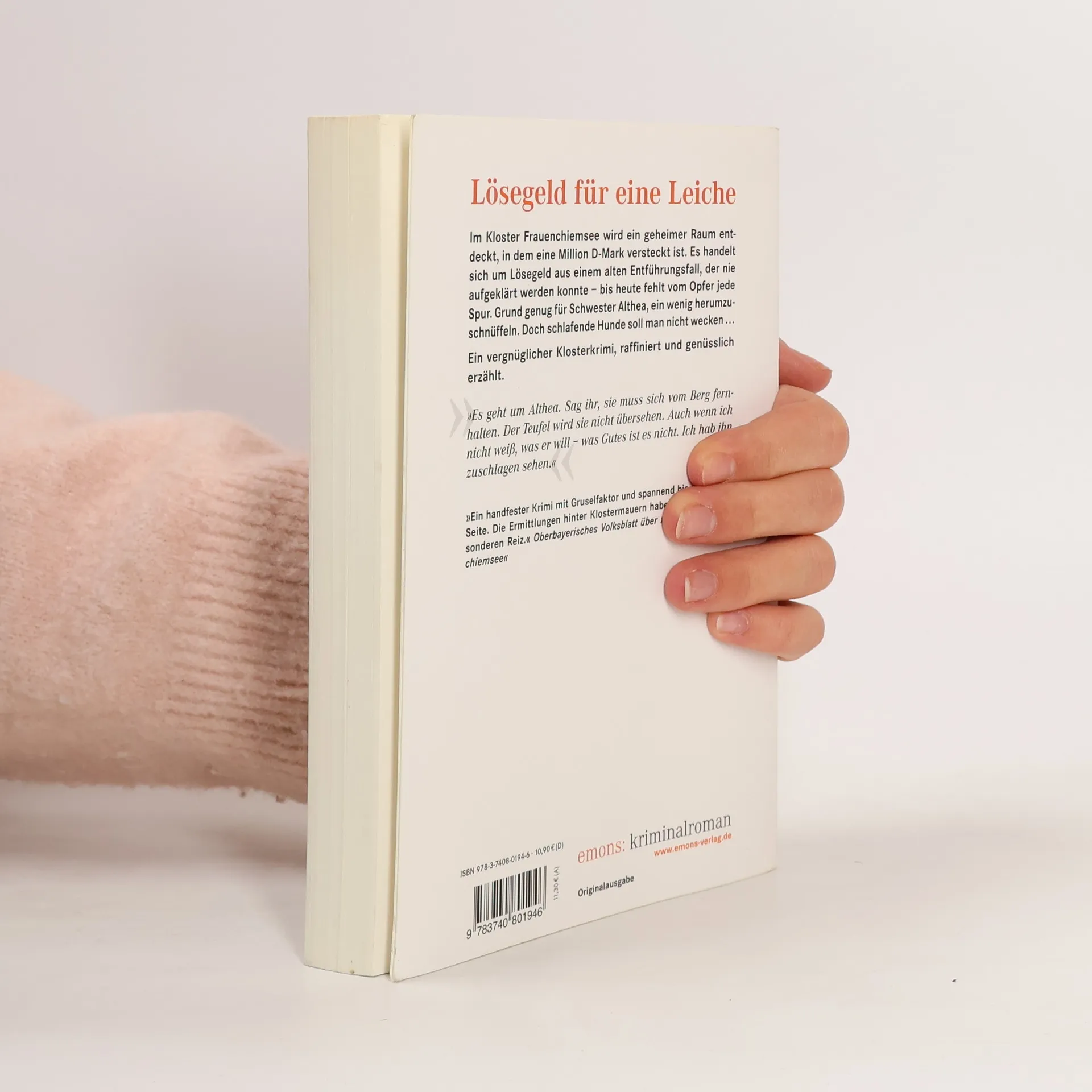 Ein vergnüglicher Klosterkrimi, raffiniert und genüsslich erzählt. Im Kloster Frauenchiemsee wird ein geheimer Raum entdeckt, in dem eine Million D-Mark versteckt ist. Es handelt sich um Lösegeld aus einem alten Entführungsfall, der nie aufgeklärt werden konnte – bis heute fehlt vom Opfer jede Spur. Grund genug für Schwester Althea, ein wenig herumzuschnüffeln. Doch schlafende Hunde soll man nicht wecken ...